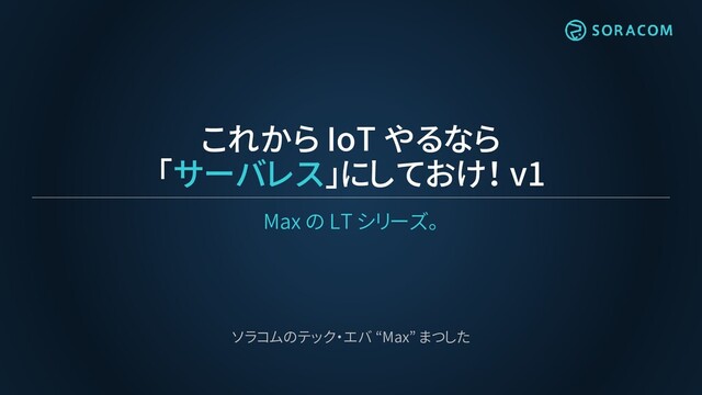 これから IoT やるなら 「サーバレス」にしておけ! v1 Max の LT シリーズ。 ソラコムのテック・エバ