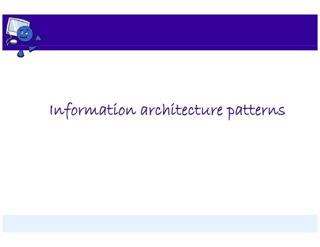 We have patterns for buildings, patterns for interaction design, and patterns for software development. But are there patterns for information architecture?