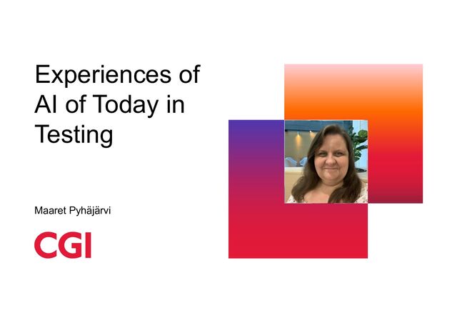 CGI Finland 01 AI transformation Applying ML, GenAI, RAG, CoT in human-centric contemporary exploratory testing 02 Automation transformation Decomposing to actionable feedback and capabilities in pipelines 03 Testing in the world The Creative Commons baseline and integrations with community 04 Testing in CGI Real work with our customers