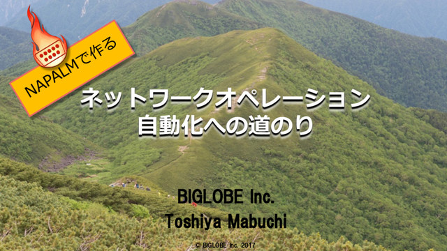 https://github.com/as2518/napalm-scenario p OperationHQ(YML⼿順書作成/管理WebGUI) Ø https://github.com/as2518/ops-hq l NAPALM p https://github.com/napalm-automation/napalm l 参考リンク p JSNAPyとPyEZで作る次世代ネットワークオペレーションの可能性 Ø Napalm-scenarioの原型はこちら Ø https://www.slideshare.net/taijitsuchiya5/jsnapypyez Ø https://github.com/as2518/scenarioJUNOS 最後に