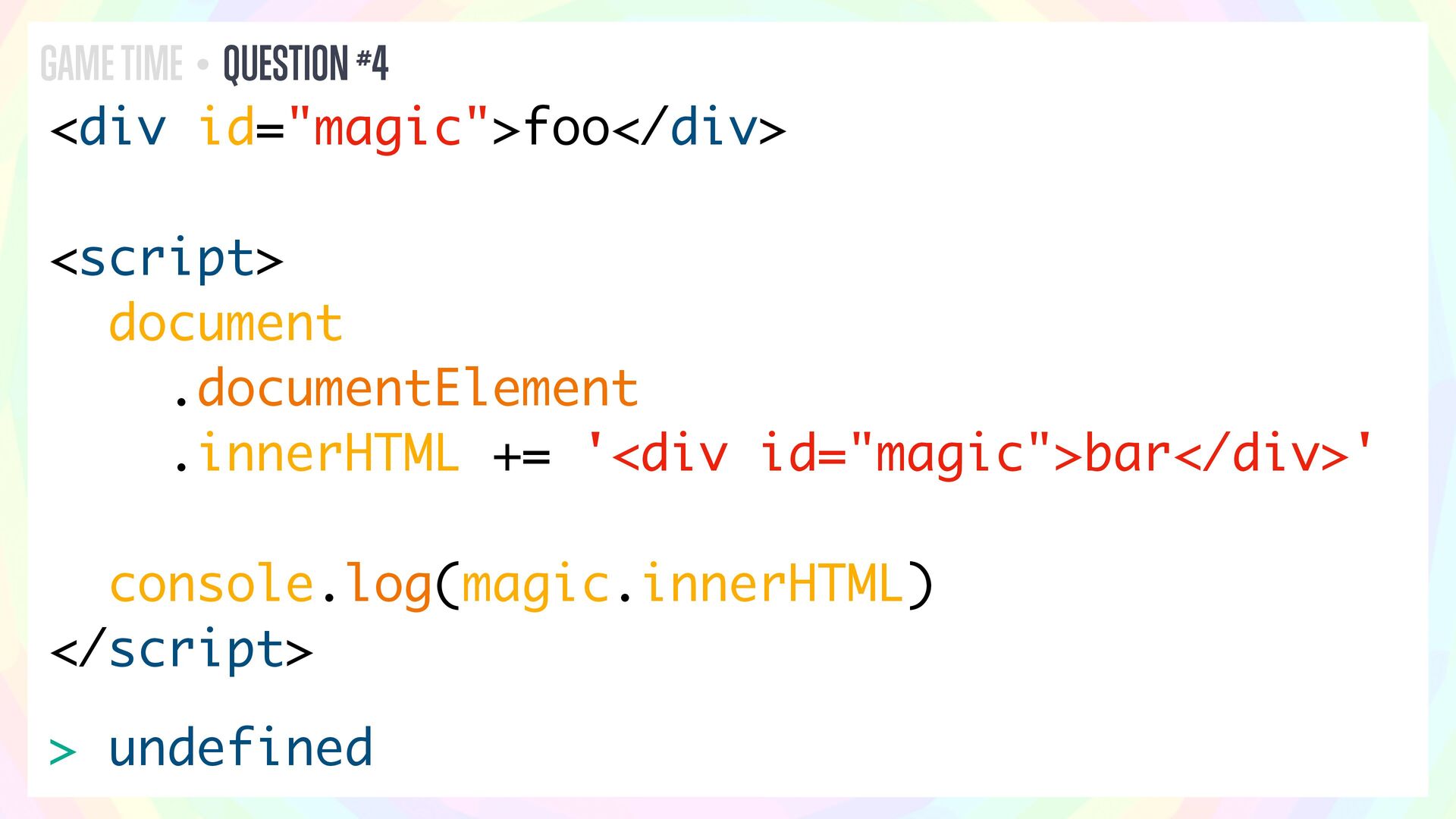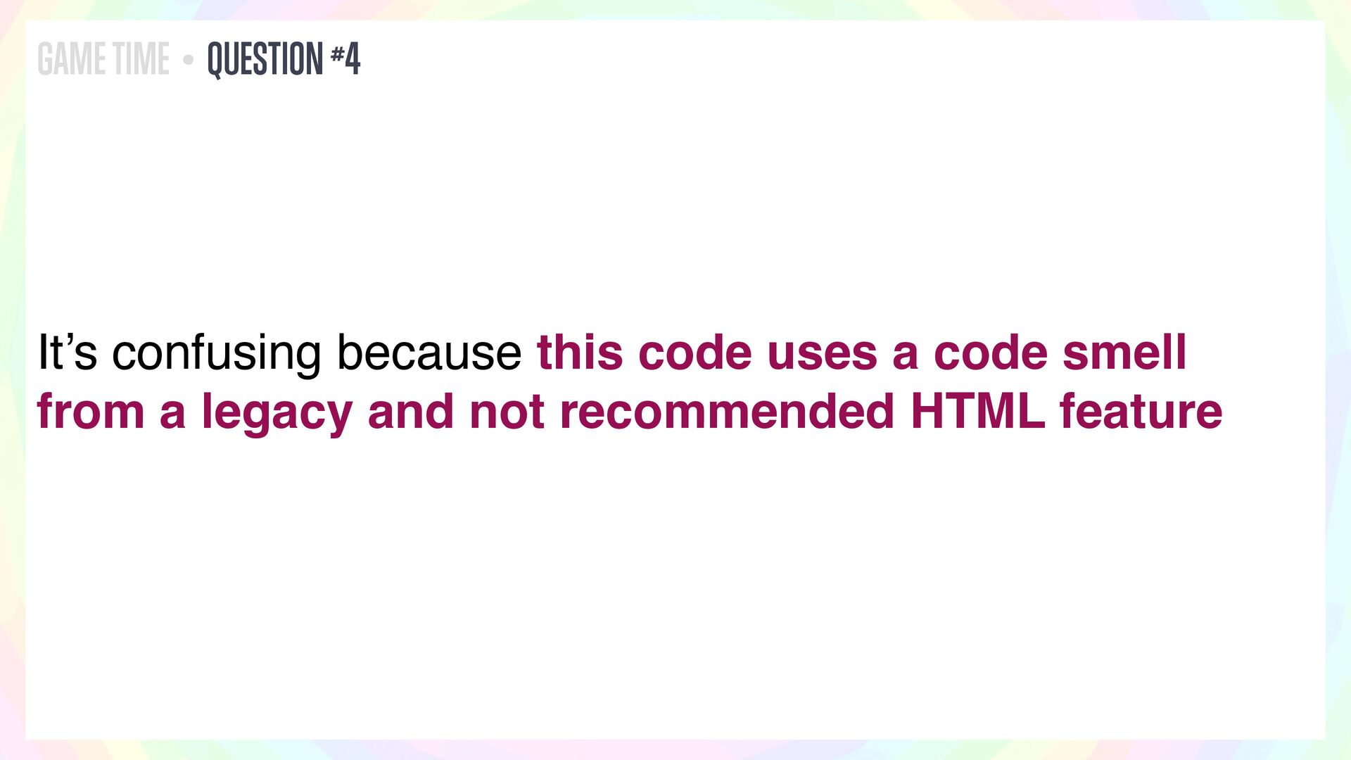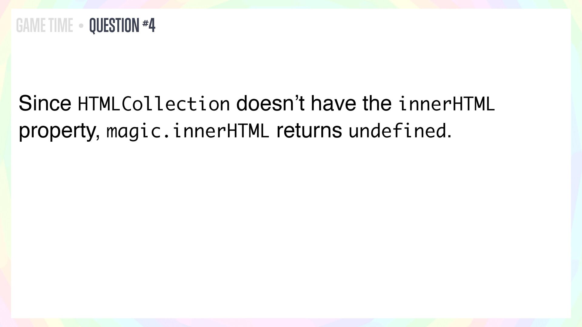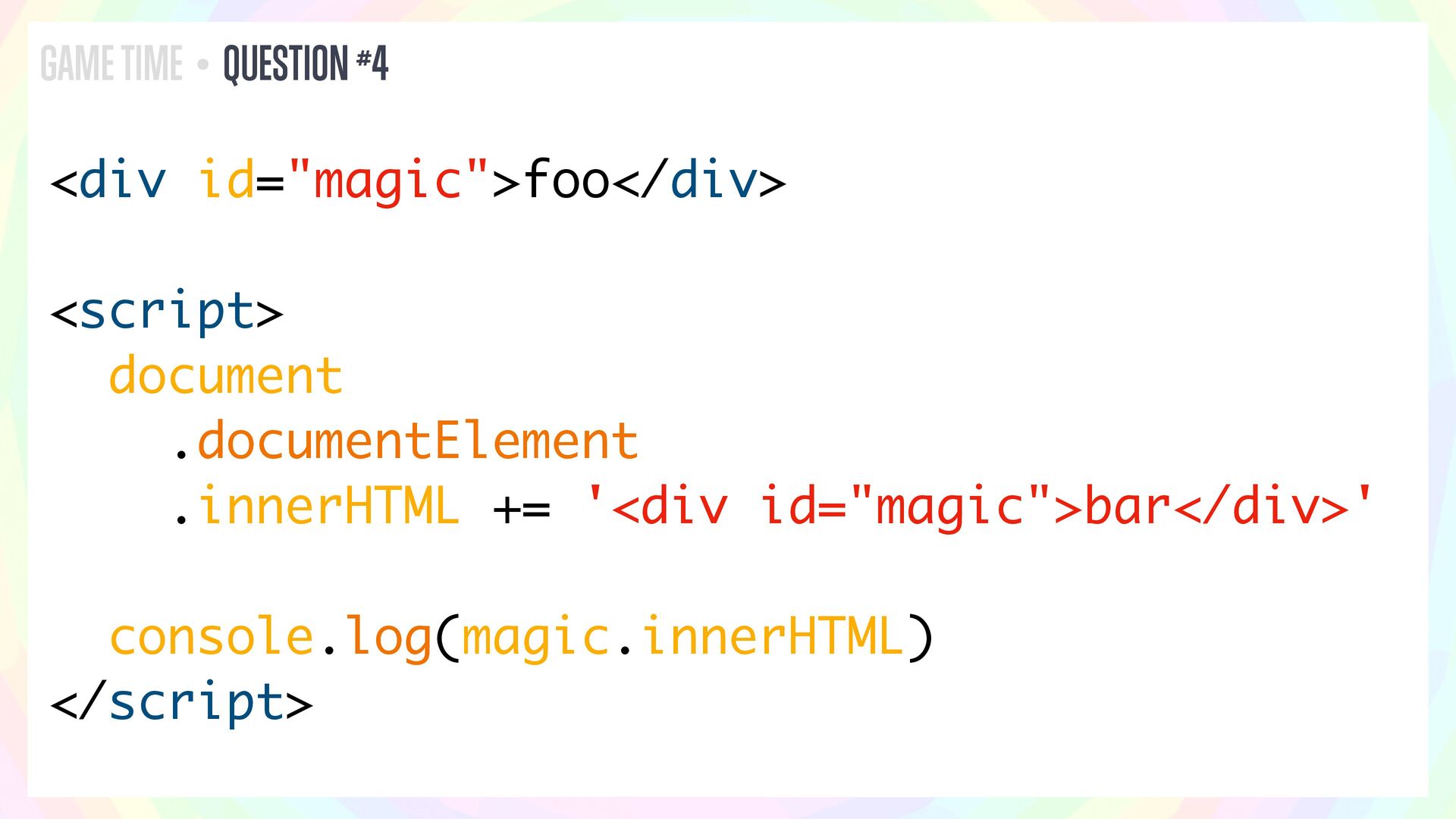 In this talk, I’ll present a series of JavaScript and HTML riddles full of mystery, and walk through each one step by step.