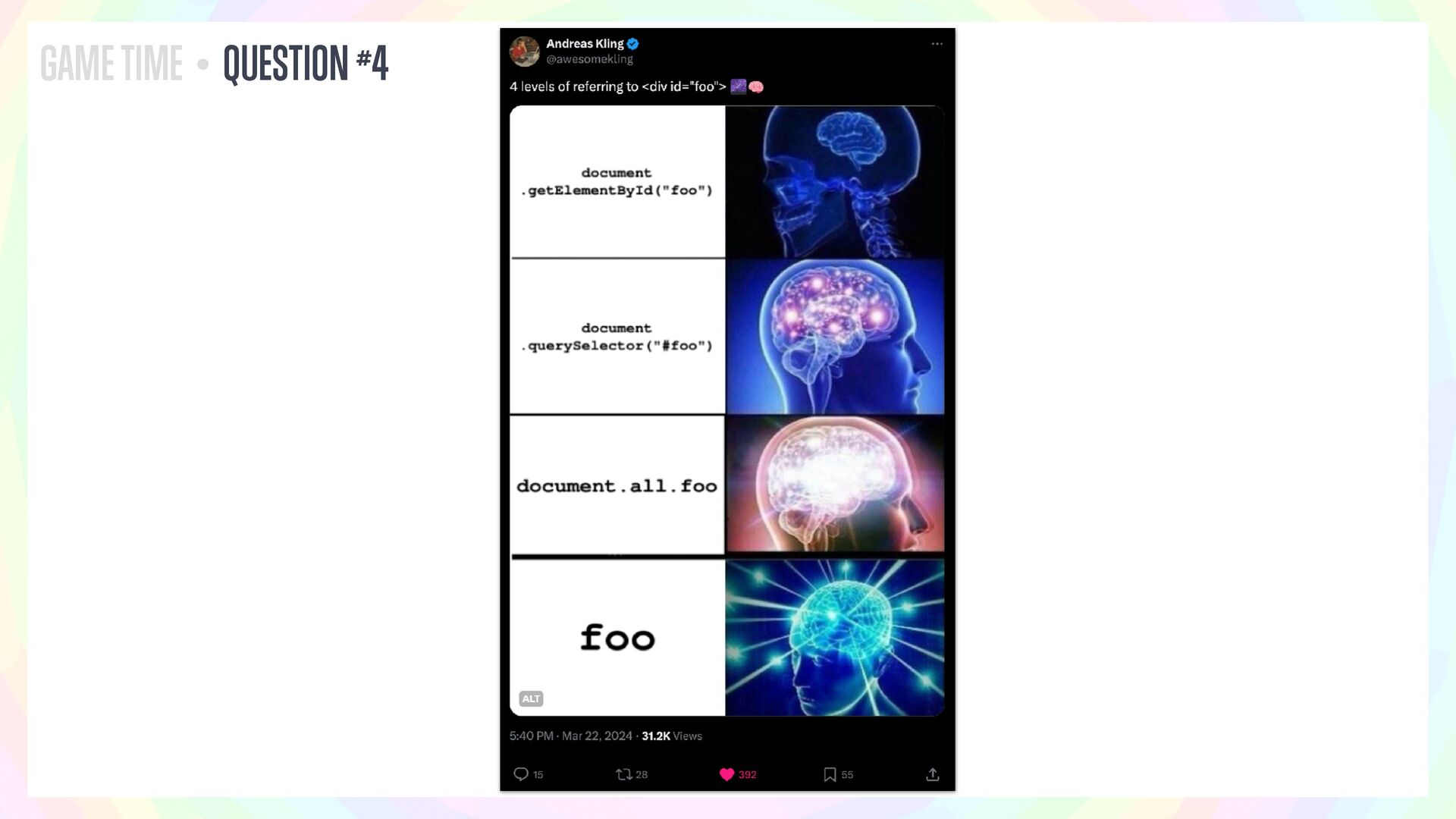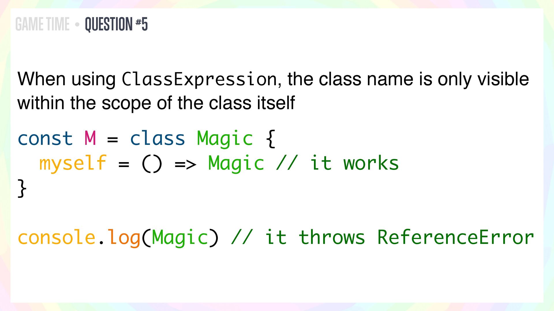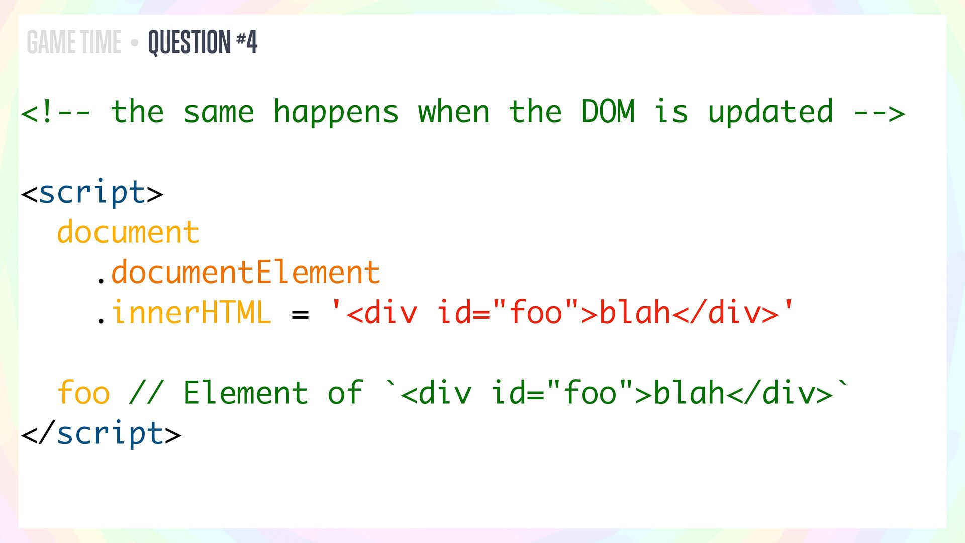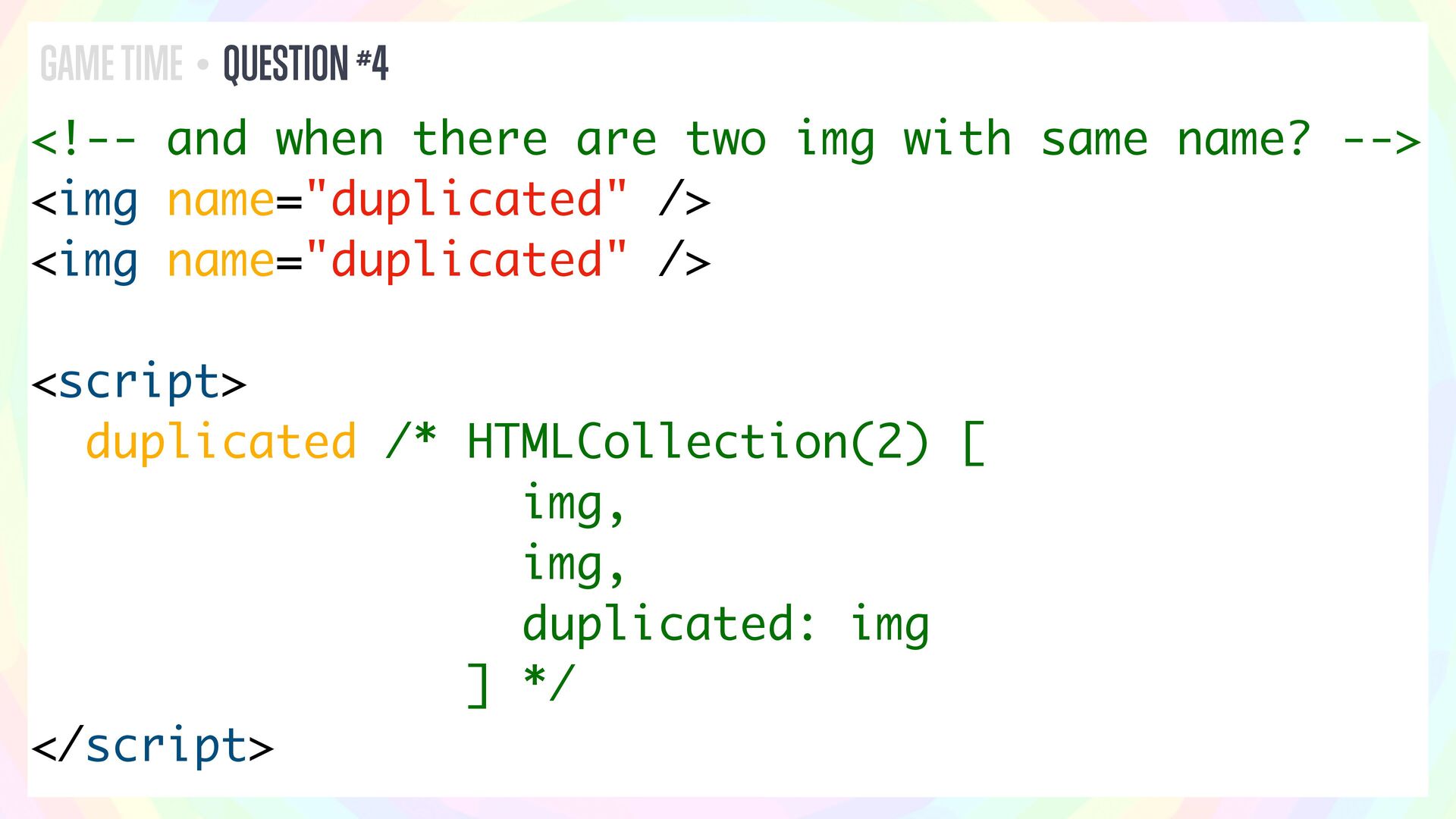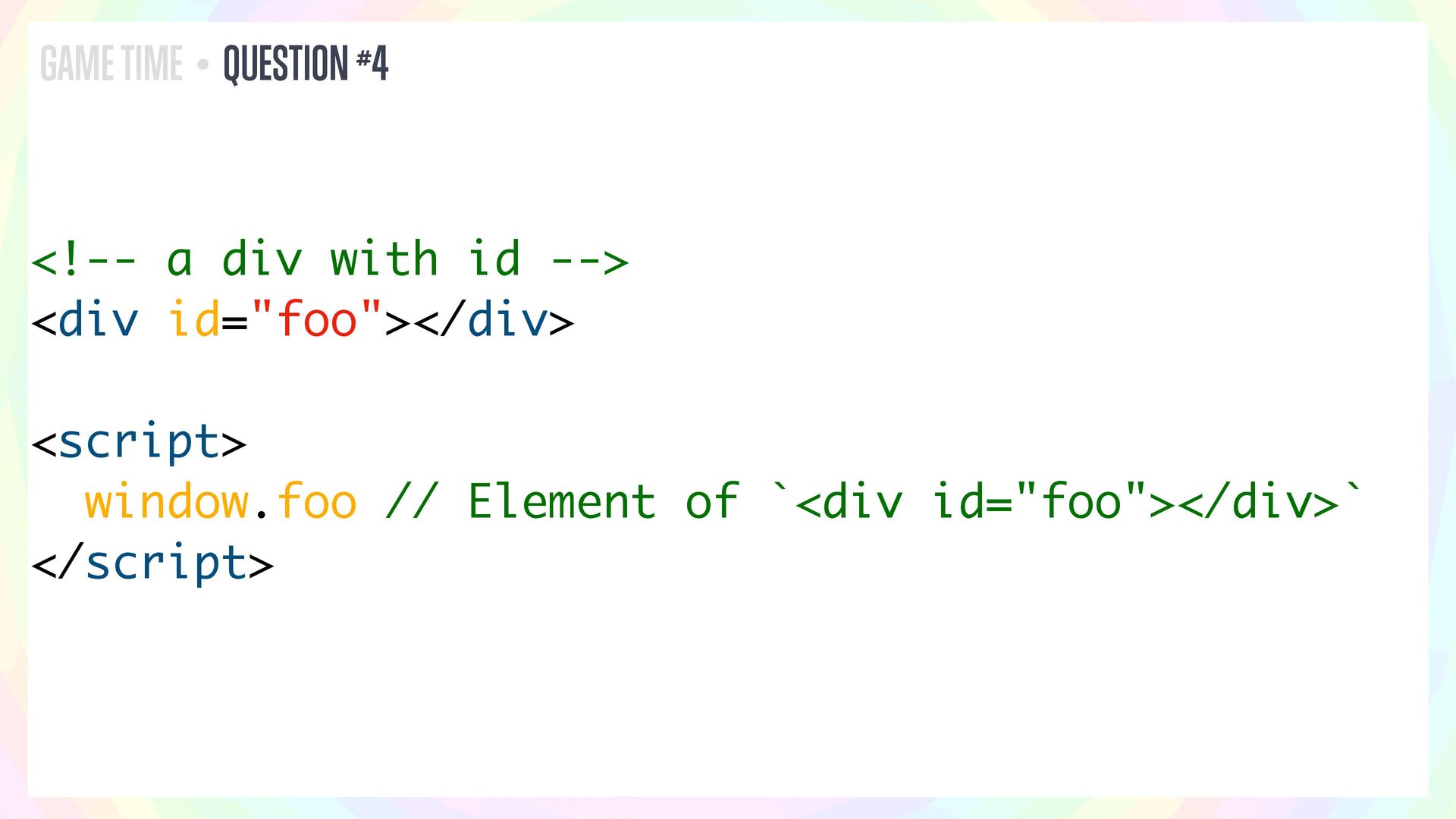 In this talk, I’ll present a series of JavaScript and HTML riddles full of mystery, and walk through each one step by step.