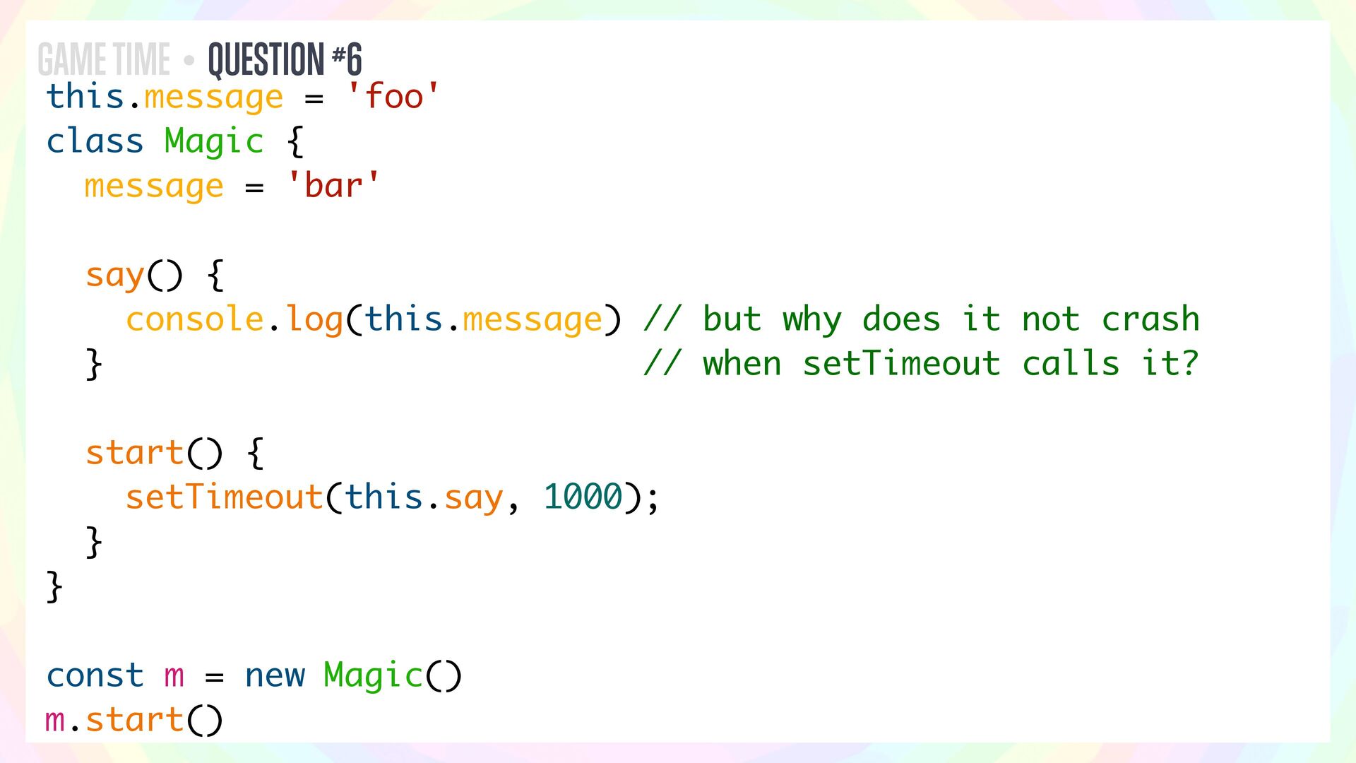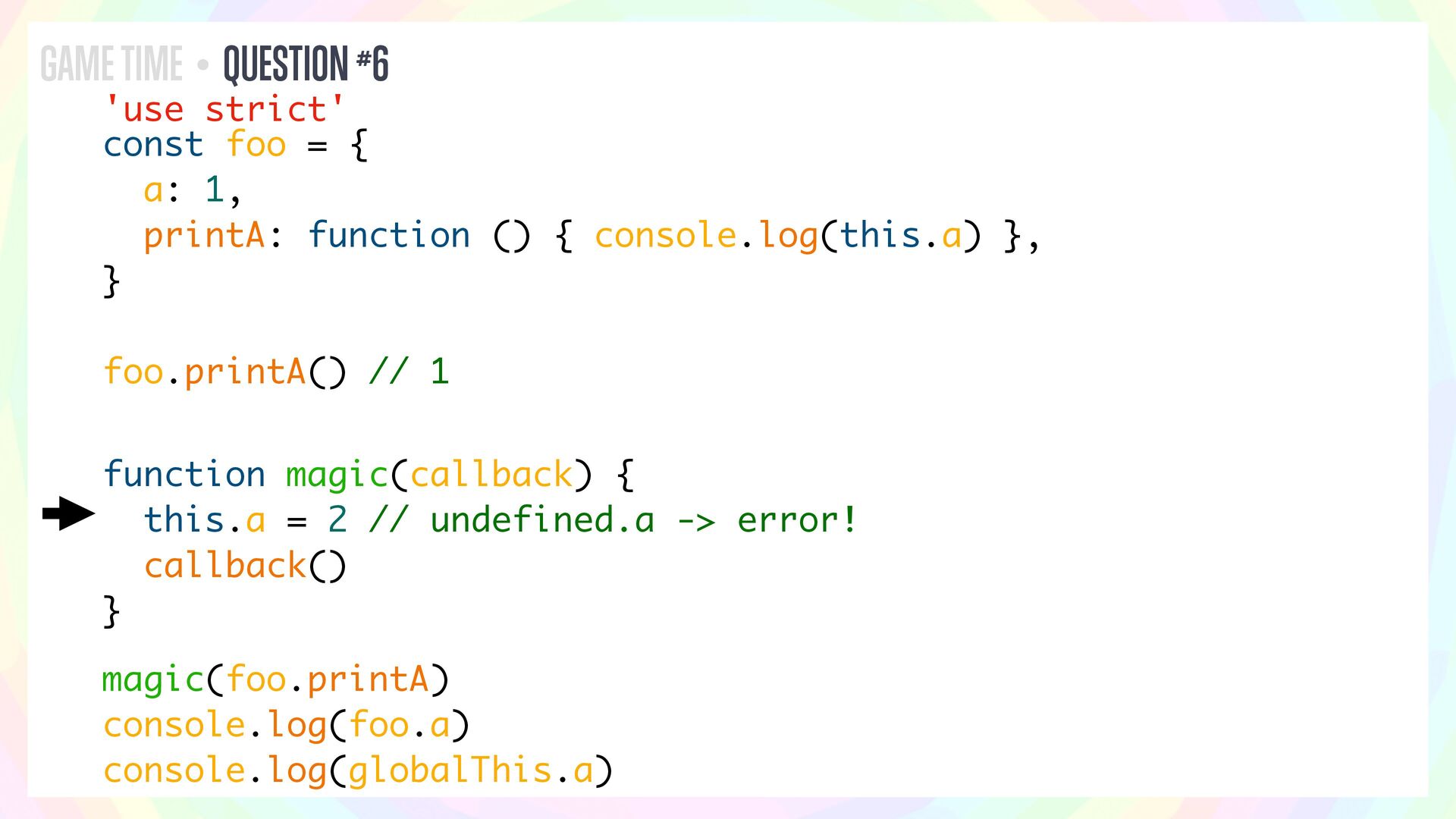 What does this code do? Will it print anything? Or will it throw an error? Does it depend on whether it’s running in Node or in the browser?