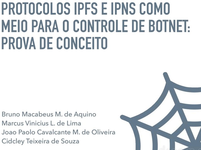 Para tornar a internet mais segura, um passo fundamental é combater o uso de uma rede de computadores infectados e remotamente controlados (Botnet) por um usuário malicioso (Botmaster), que pode usá-la para, dentre outros fins, ataques DDoS. Para combater esse problema, um desafio é a evolução dos serviços de comando e controle (C\&C) usados pelo Botmaster para gerenciar a sua Botnet, cada vez mais sofisticados e difíceis de se detectar. Uma evolução natural no C\&C seria o uso de novos protocolos de computação distribuída. Este artigo apresenta uma prova de conceito de C\&C com dois desses protocolos, IPFS e IPNS, que possibilitariam ao Botmaster obter uma comunicação mais segura e anônima.