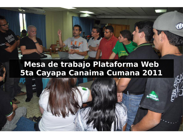 Canaima, con mira de agilizar el proceso de publicación de libros y artículos en formatos electrónicos. Responsable: Sasha Solano. • Preparar propuesta de mini cayapa, en procura de mejorar la calidad de la documentación actual del Wiki. Responsable: Sasha Solano, Leonardo Caballero.