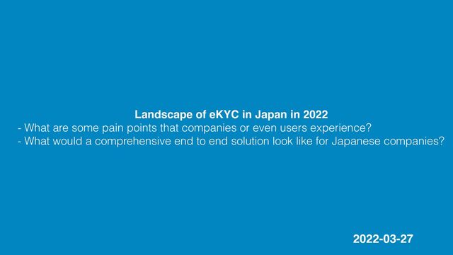 some pain points that companies or even users experience? - What would a comprehensive end to end solution look like for Japanese companies? 2022-03-27
