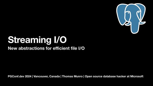 (not relevant to us, yet) ssize_t read(int filedes, void *buf, size_t nbyte) ssize_t pread(int filedes, void *buf, size_t nbyte, off_t offset) • The concept of “current file position” doesn’t fit well with multi-threaded applications sharing “seekable” file descriptors • PostgreSQL 12 switched from lseek + read/write to pread/pwrite, removing extra system calls and book-keeping in vfd layer • Required wrapper function for Windows; unfortunately the wrappers are imperfect and change the current position, so we use the names pg_pread and pg_pwrite to remember that!