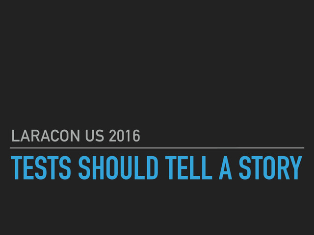 Feature: Getting Laracon attendees test their code In order to convince Laracon attendees to test their code As a speaker I want to provide helpful information and entertainment Scenario: Adam Wathan gives a TDD talk prior to my talk Given that attendees recently saw Adam’s talk And I was in the audience When I go to give my talk Then I can make some assumptions on what attendees know And I can weep as a rearrange my slide deck