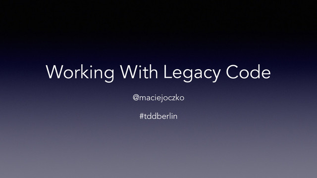 Working With Code Legacy @maciejoczko #tddberlin