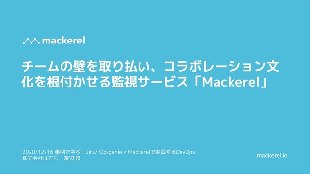 mackerel.io チームの壁を取り払い、コラボレーション文 化を根付かせる監視サービス「Mackerel」 2020/12/16 事例で学ぶ!Jira/ Opsgenie × Mackerelで実践するDevOps 株式会社はてな 渡辺 起
