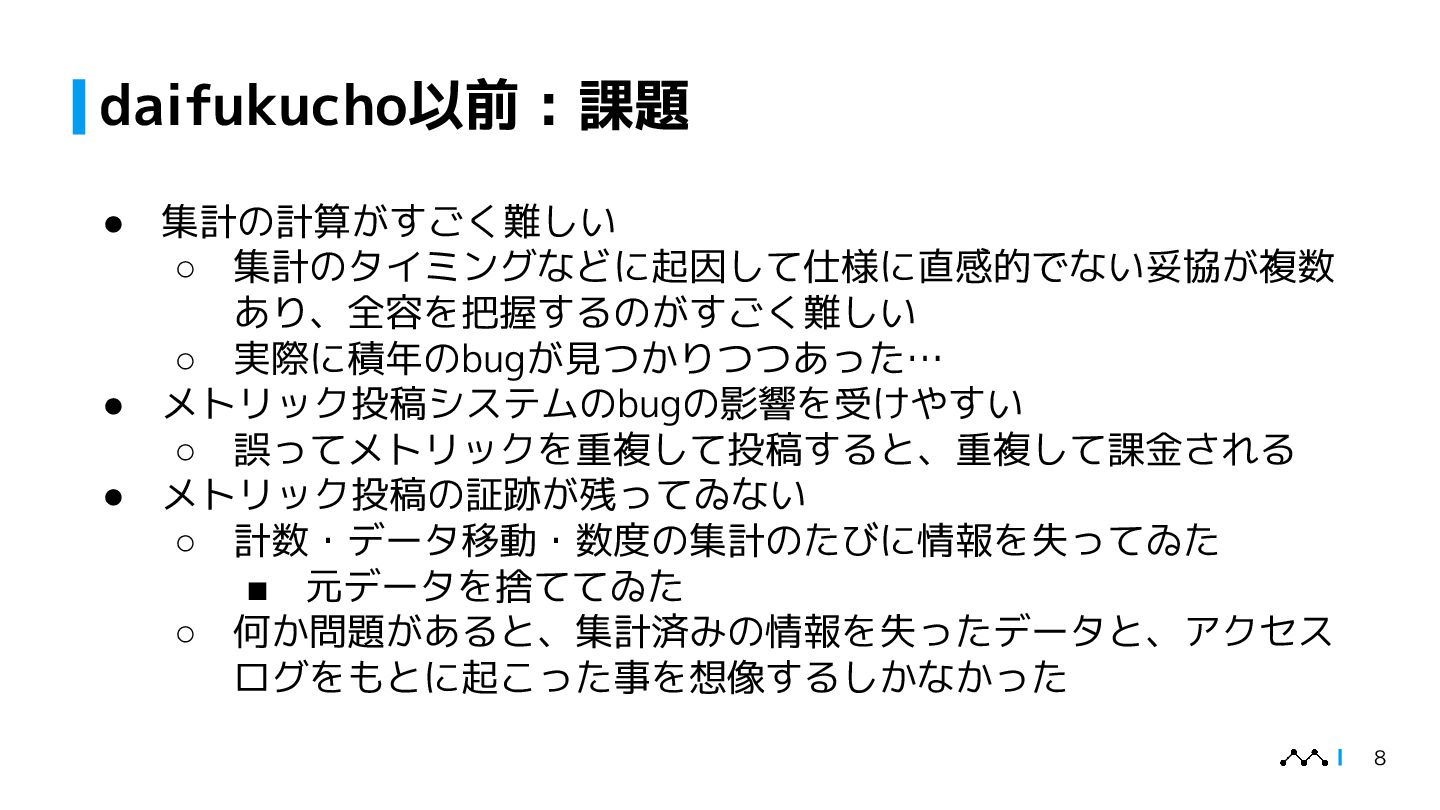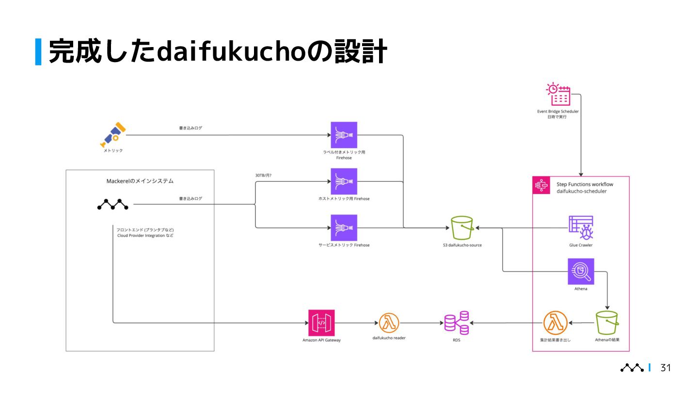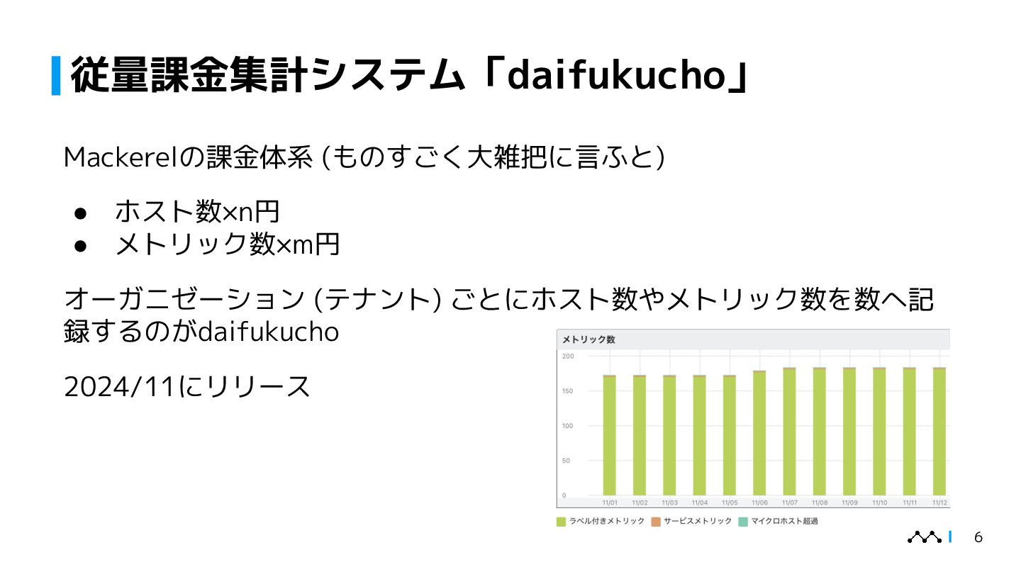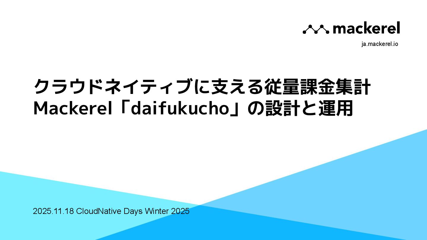本講演では、はてなが提供するオブザーバビリティプラットフォームMackerelの従量課金集計システム「daifukucho」の設計と運用を紹介します。Mackerelは2024年末にOpenTelemetryへ正式対応し、メトリック・スパン単位での課金体系が必要となりました。daifukuchoは課金根拠を後から検証でき、利用状況をユーザーに可視化することを目的に構築されました。AWS上にDataFirehose、StepFunctions、Athena等を組み合わせ、ほぼ生データを蓄積するシンプルな構成で、大量のデータを長期間安全に保存しつつ低コストで集計を実現しています。設計の背景には、課金への信頼性確保やユーザーへの透明性提供といった要求がありました。講演ではこのアーキテクチャに至った経緯、開発を安全に進めた工夫、さらに運用中に発生したトラブル事例を共有し、従量課金システムを支える技術と課題解決の実例を提示します。