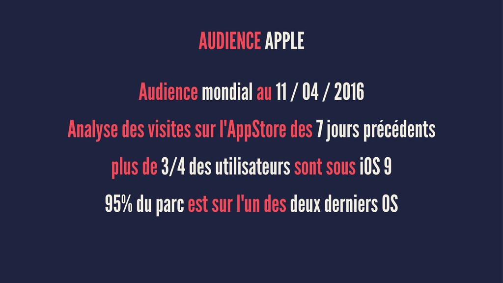 on peut changer l'OS minimum requis Cette modification n'empêche pas l'utilisation de l'application par ceux qui l'ont déjà Gardons à l'esprit que le travail effectué aujourd'hui est destiné aux utilisateurs des mois/années à venir Ne pas utiliser les fonctionnalités des derniers OS impacte leur experience utilisateur ainsi que notre maintenance applicative