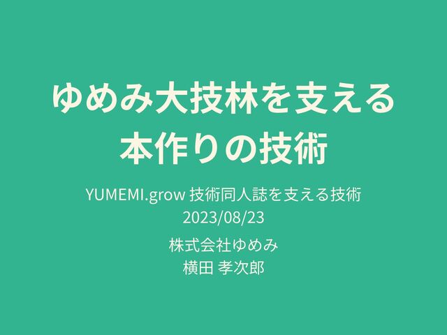 2023/08/23に開催されたYUMEMI.grow 技術同人誌を支える技術で登壇した際の資料。