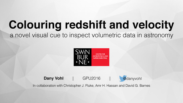 Sept. 2016 Vohl, D., et al. 2016a, PeerJ Computer Science. In press. Vohl, D., Fluke, C. J., Hassan, A. H., & Barnes, D. G. 2016b, in Astronomical Data Analysis Software and Systems XXV, Astronomical Society of the Pacific Conference Series. In press.