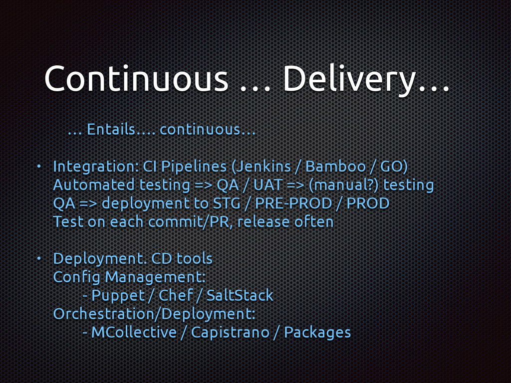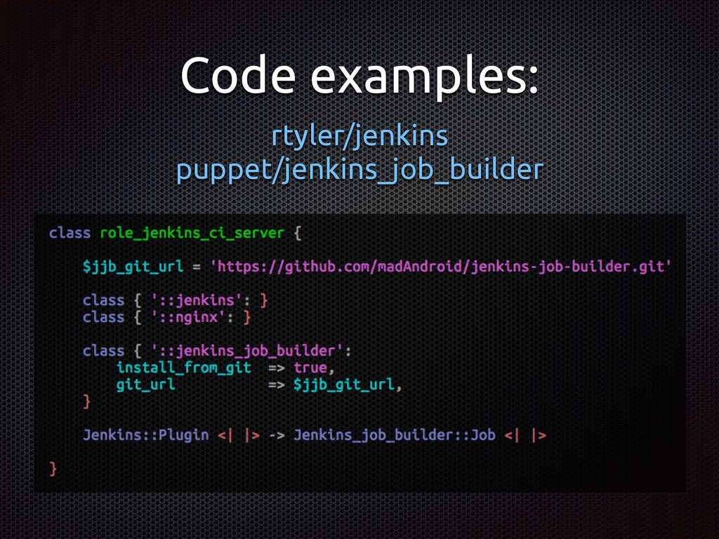 - Puppet / Chef / SaltStack