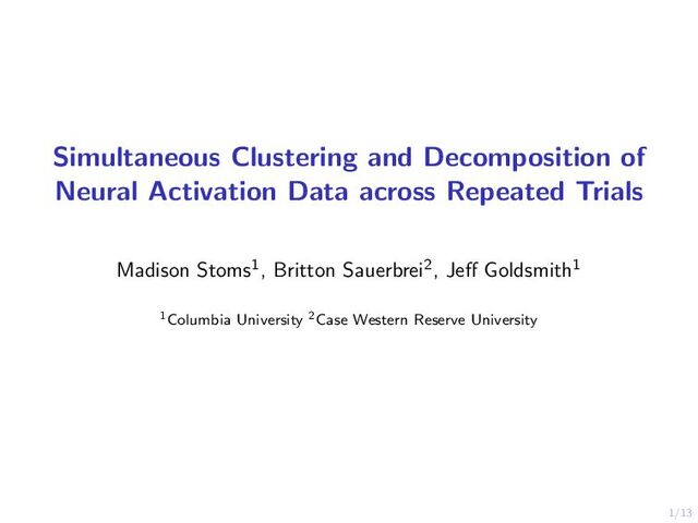 Scientists are interested in identifying neural activation patterns associated with skilled movement in the motor cortex. Neural firing rates are collected from trained mice as they reach for a food pellet on a number of trials under different scenarios. Functional data analysis is a collection of methods which treat data measured on a dense grid as a random function. Under this framework, we aim to cluster the neurons into interpretable clusters while preserving the inherent differences in activation between trial types. Additionally, we are interested in extracting low-dimension, cluster-specific activation patterns. We develop a method which simultaneously clusters and decomposes multilevel functional data across trials, resulting in distinguishable cluster-and-trial-type-specific representations of the data. We demonstrate this method on a collection of 25 neurons across 196 trials of two types.