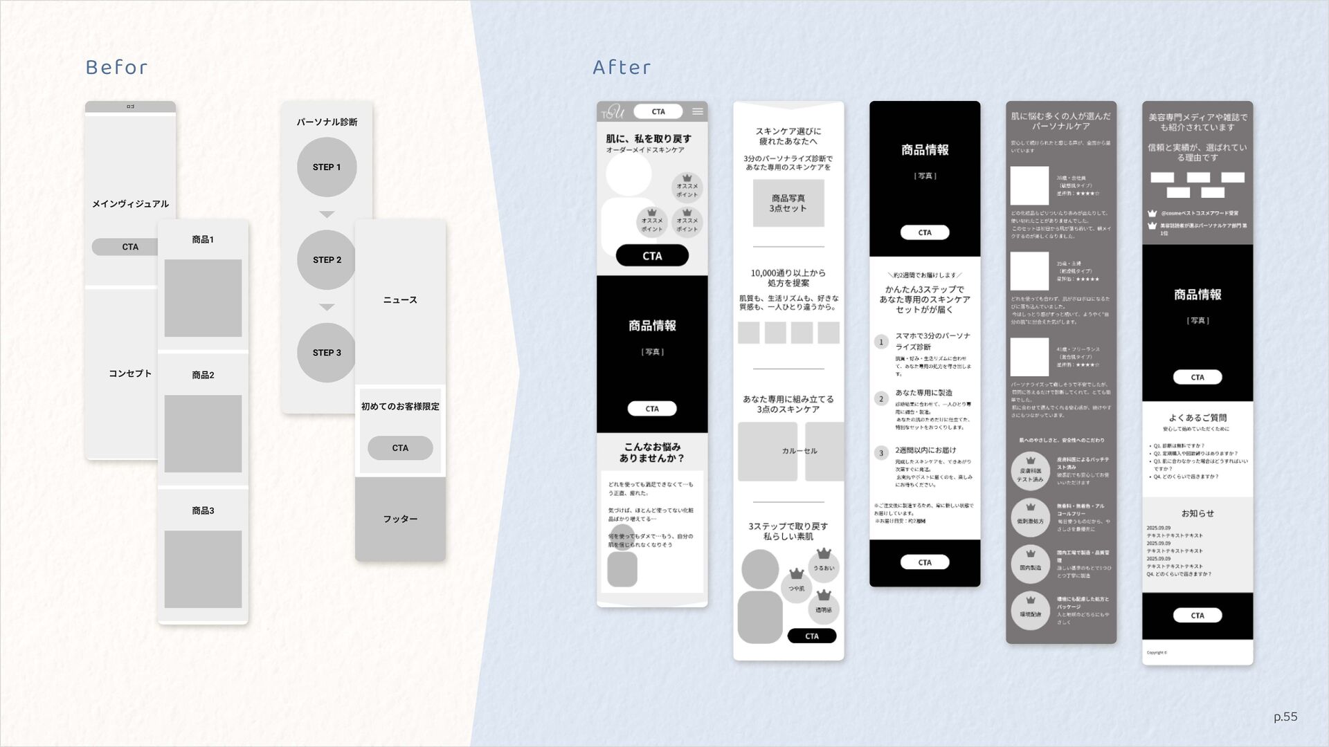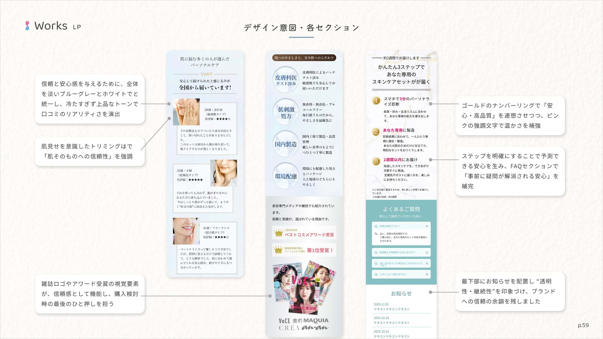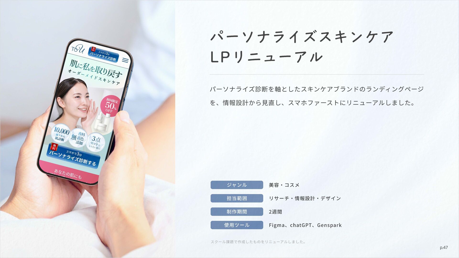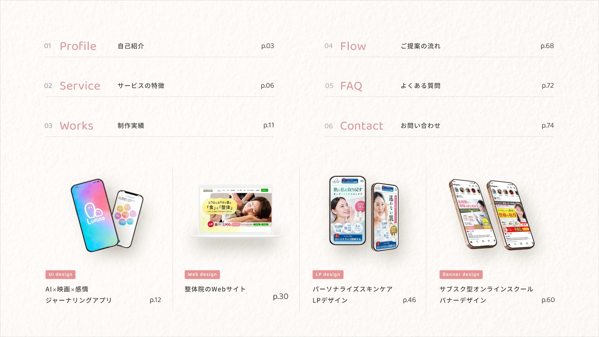 情報設計、ワイヤーフレーム、UI(アプリ)デザイン、Webデザイン、LP制作、バナーなど、 企画からデザインまでを掲載しています。