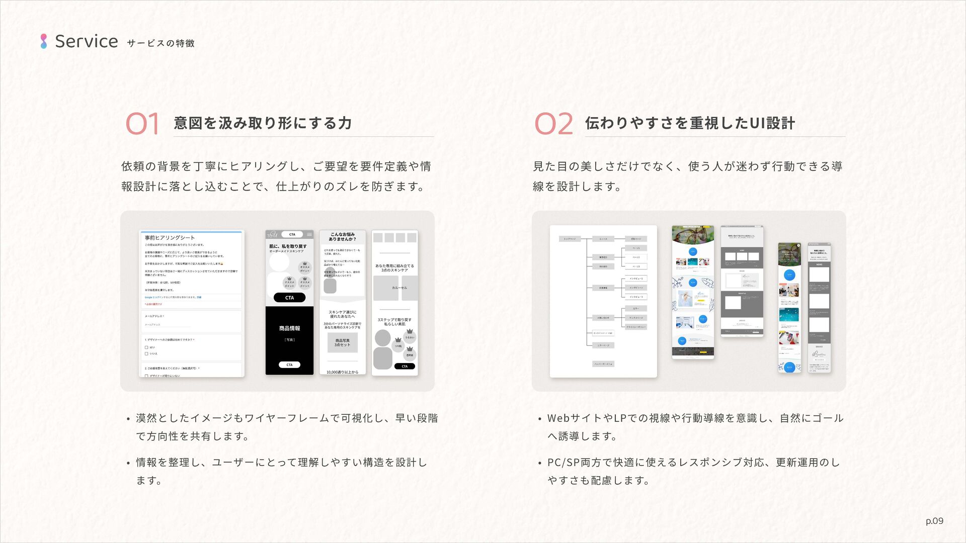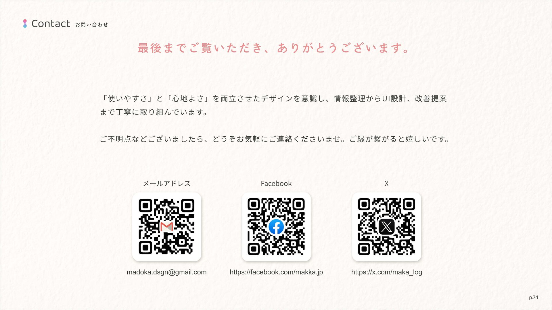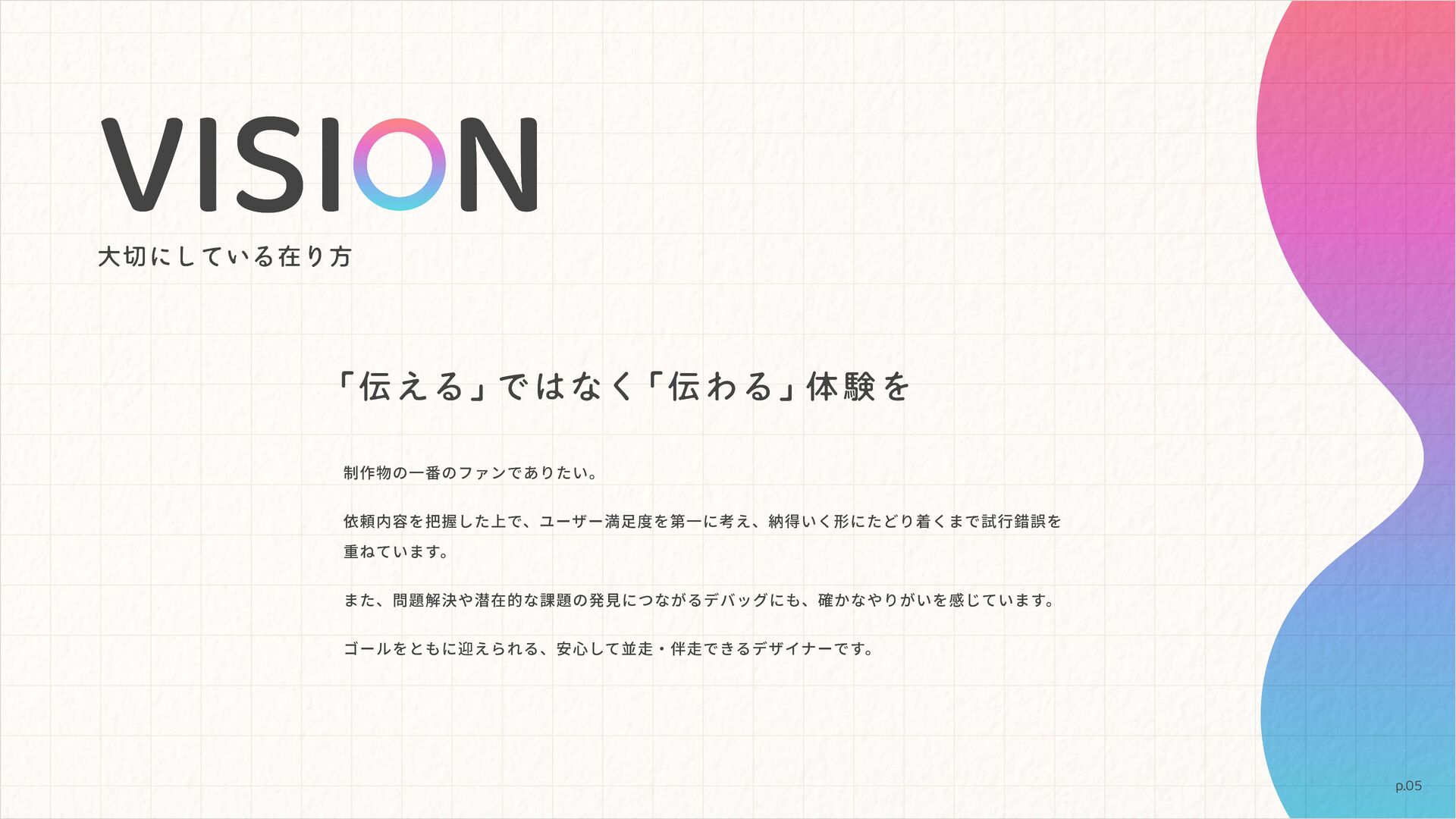 「使いやすさの中に、あたたかさを宿す」ことを大切にし、 ユーザーの気持ちに寄り添いながら、目的に合ったわかりやすい体験づくりを意識しています。