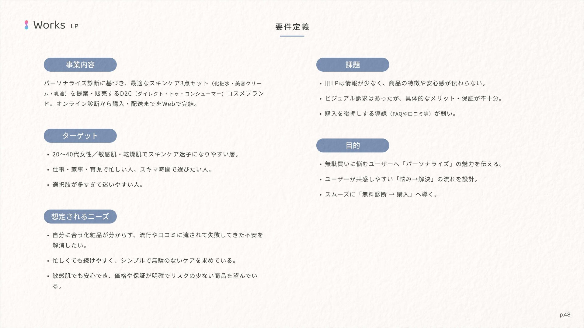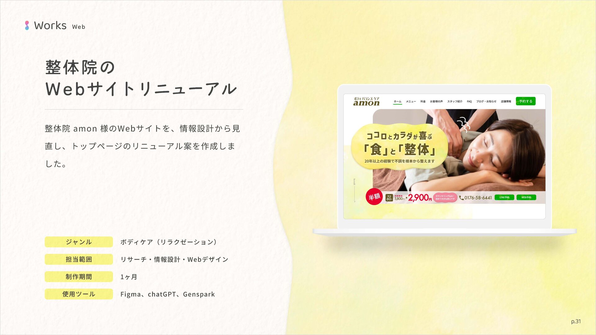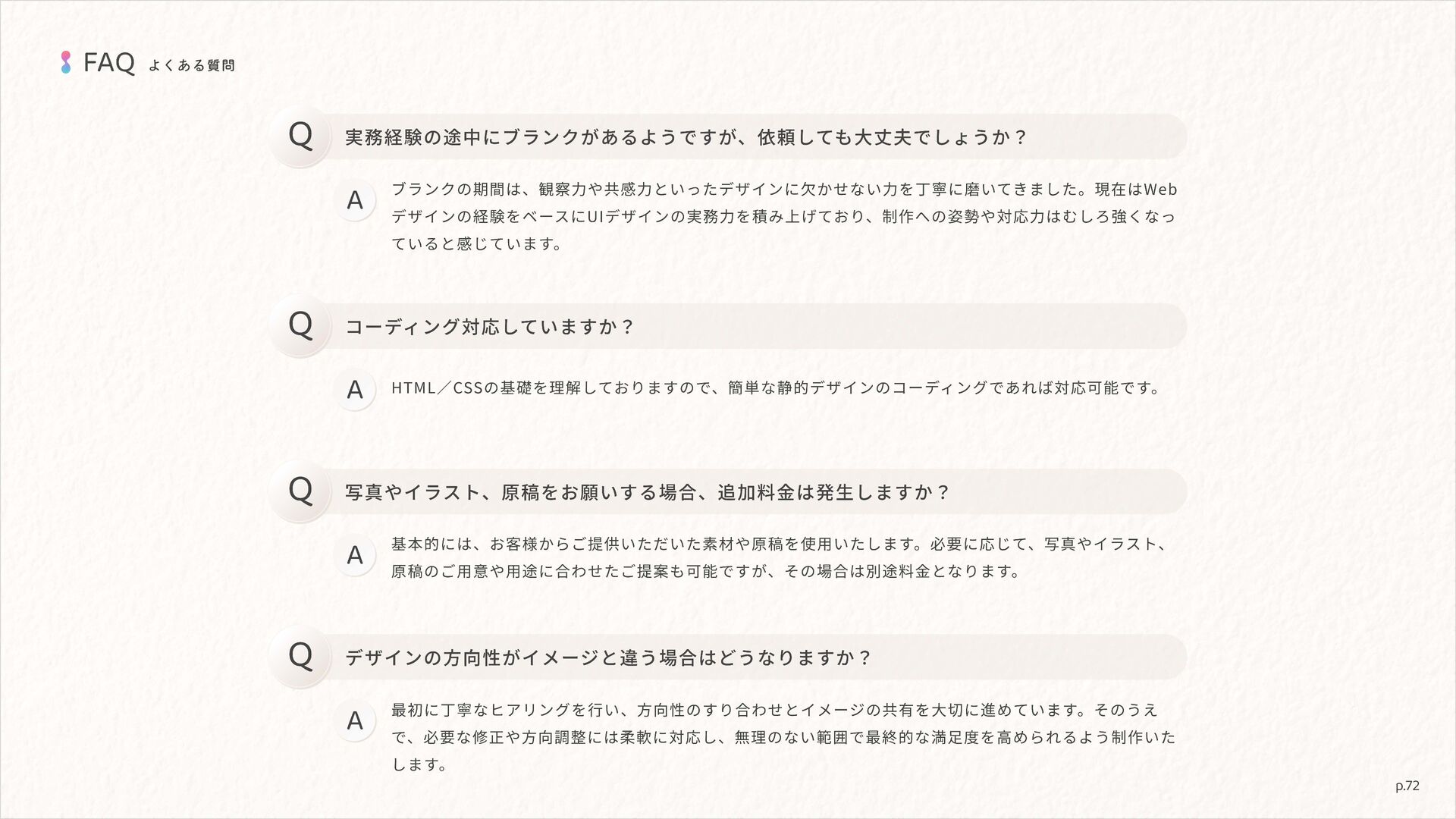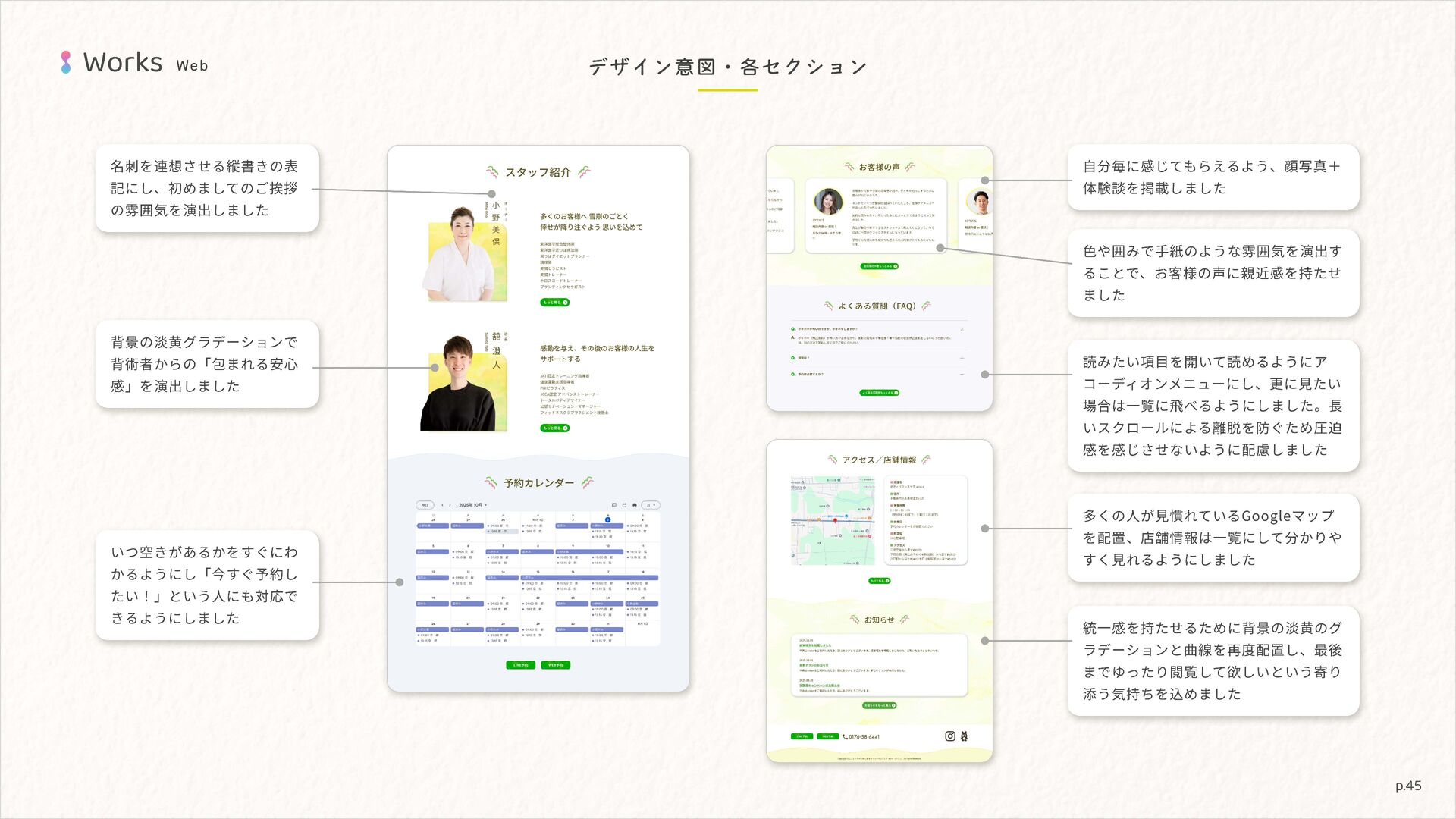 「使いやすさの中に、あたたかさを宿す」ことを大切にし、 ユーザーの気持ちに寄り添いながら、目的に合ったわかりやすい体験づくりを意識しています。
