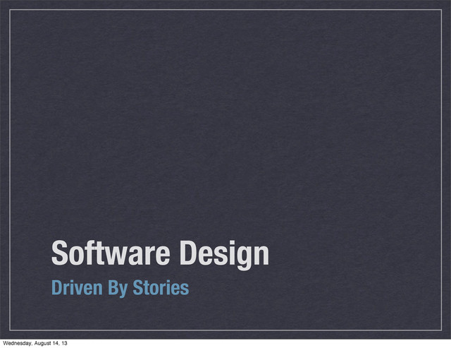 Software Design, What’s that anyways? Wednesday, August 14, 13