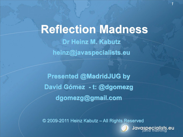 Cool Facts: Esta charla incluye contenidos extraídos del JavaSpecialists Master Course y material relacionado creados ambos por el Java Champion Dr. Heinz Kabutz. Contamos con su permiso explícito para su uso en esta reunión del Madrid JUG.