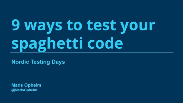 Nordic Testing Days 9 ways to test your spaghetti code
