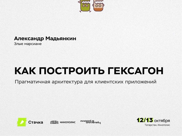 реализации зависимостей • Их можно вынести в отдельные пакеты и использовать для веб- или nodejs-приложения • Придется написать слой приложения заново • Слой фреймворка можно перенести частично • Или добавить туда реализации для разных платформ 98