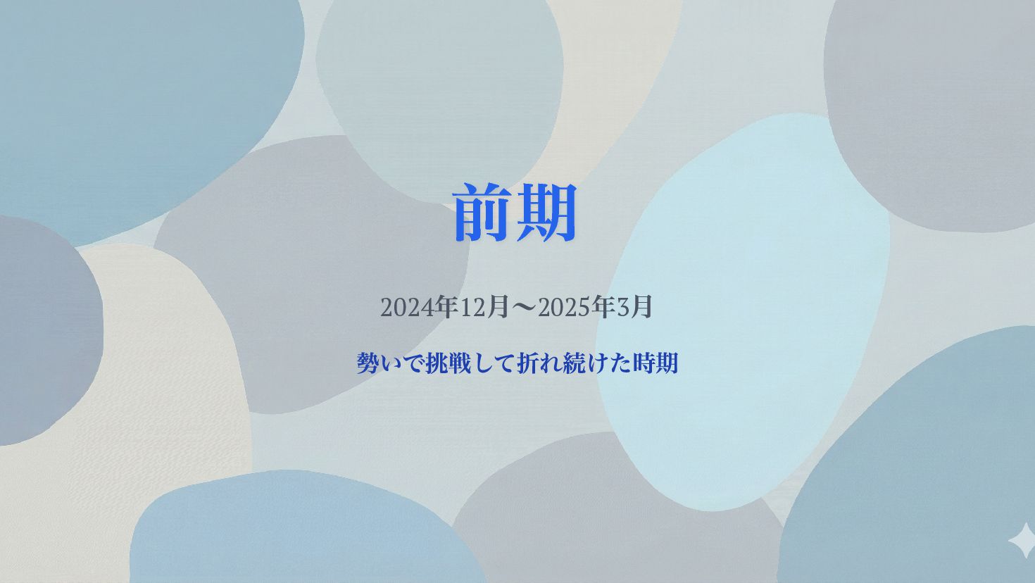 前期 前期 2024 年12 月〜2025 年3 月 勢いで挑戦して折れ続けた時期