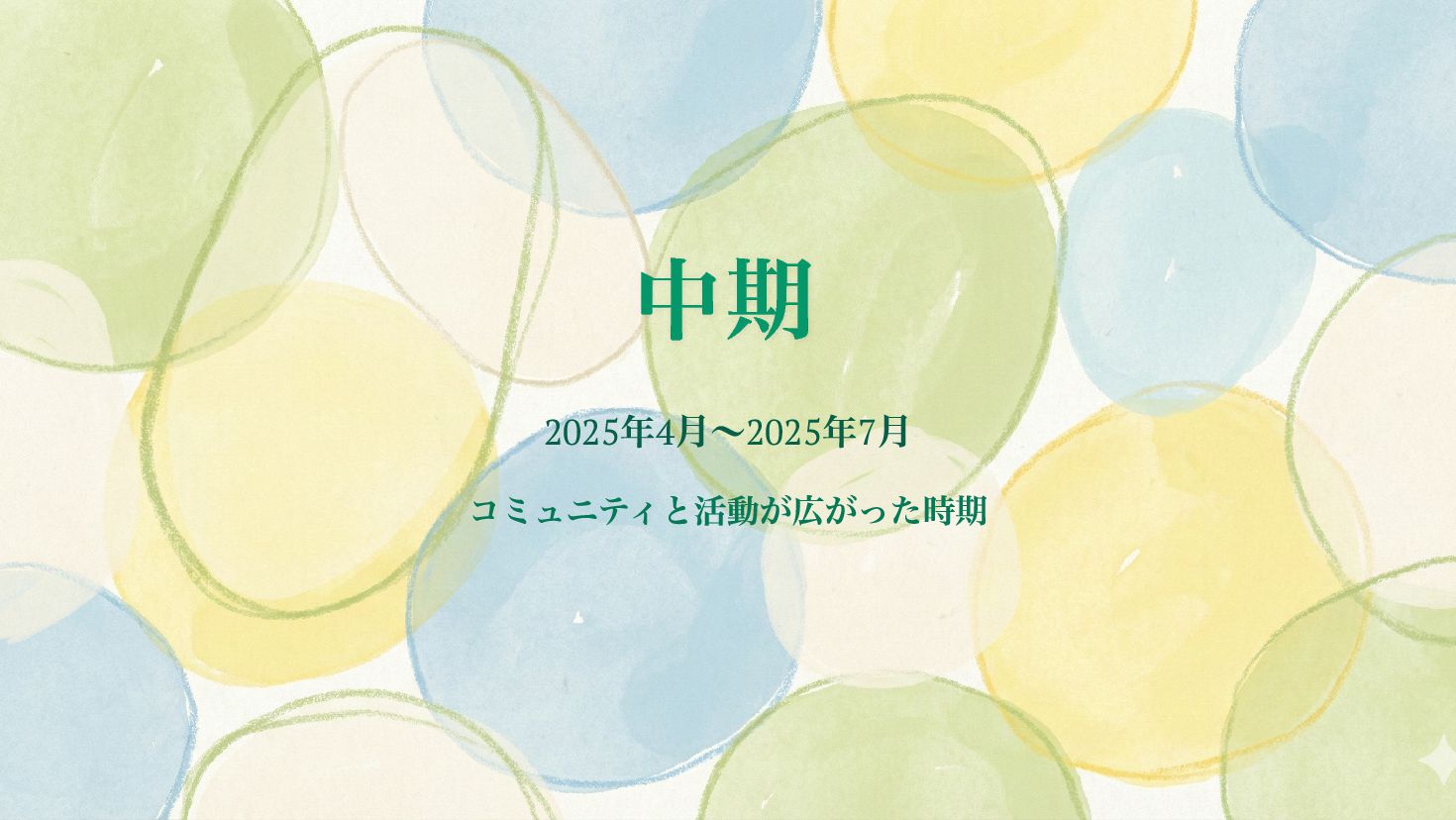 中期 中期 2025 年4 月〜2025 年7 月 コミュニティと活動が広がった時期