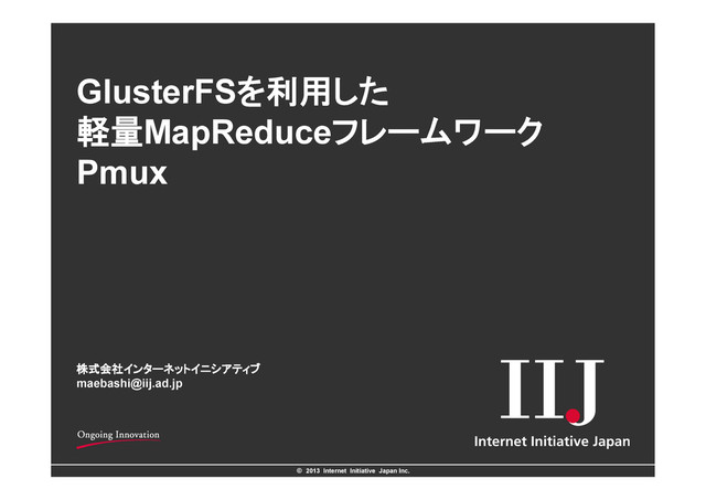 GlusterFSΛར༻ͨ͠ ܰྔMapReduceϑϨʔϜϫʔΫ Pmux גࣜձࣾΠϯλʔωοτΠχγΞςΟϒ