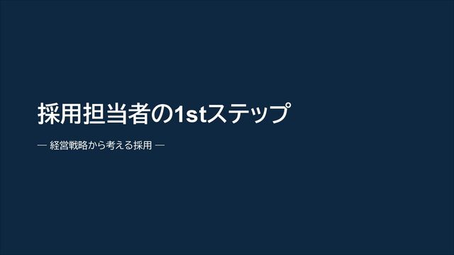 採用担当者の1stステップ ― 経営戦略から考える採用 ―