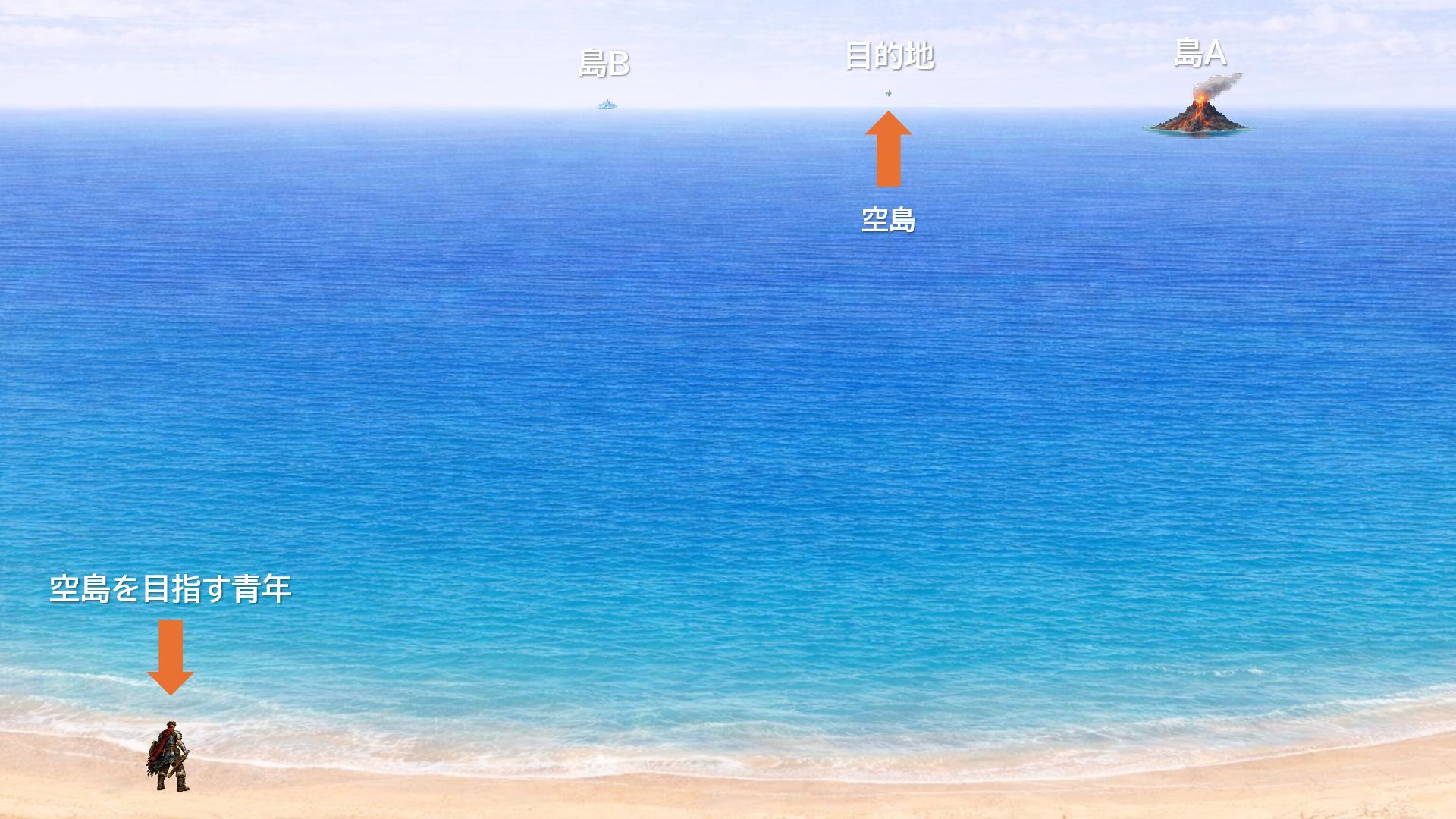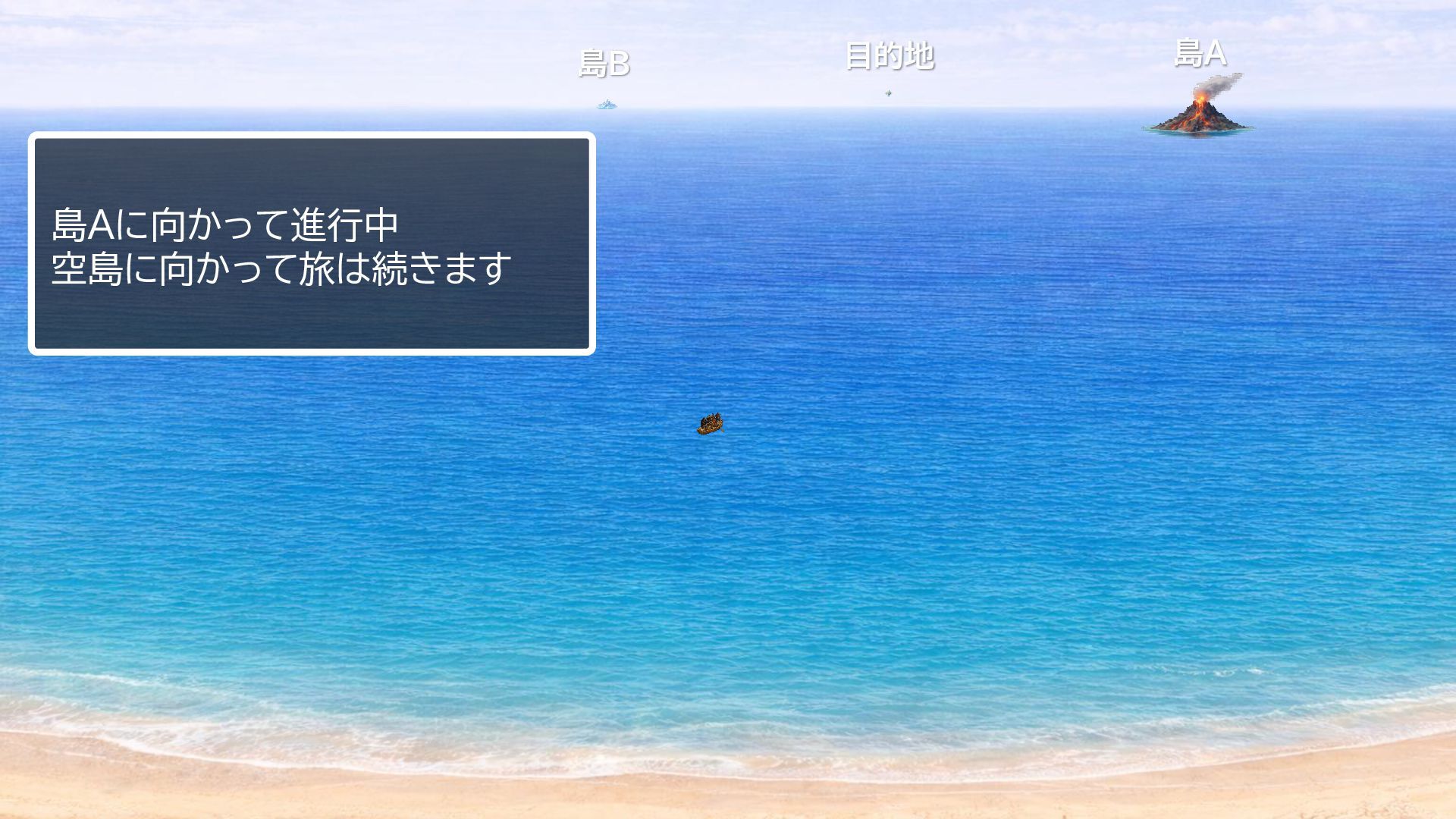 島A 島B 目的地 島Aに向かって進行中 空島に向かって旅は続きます
