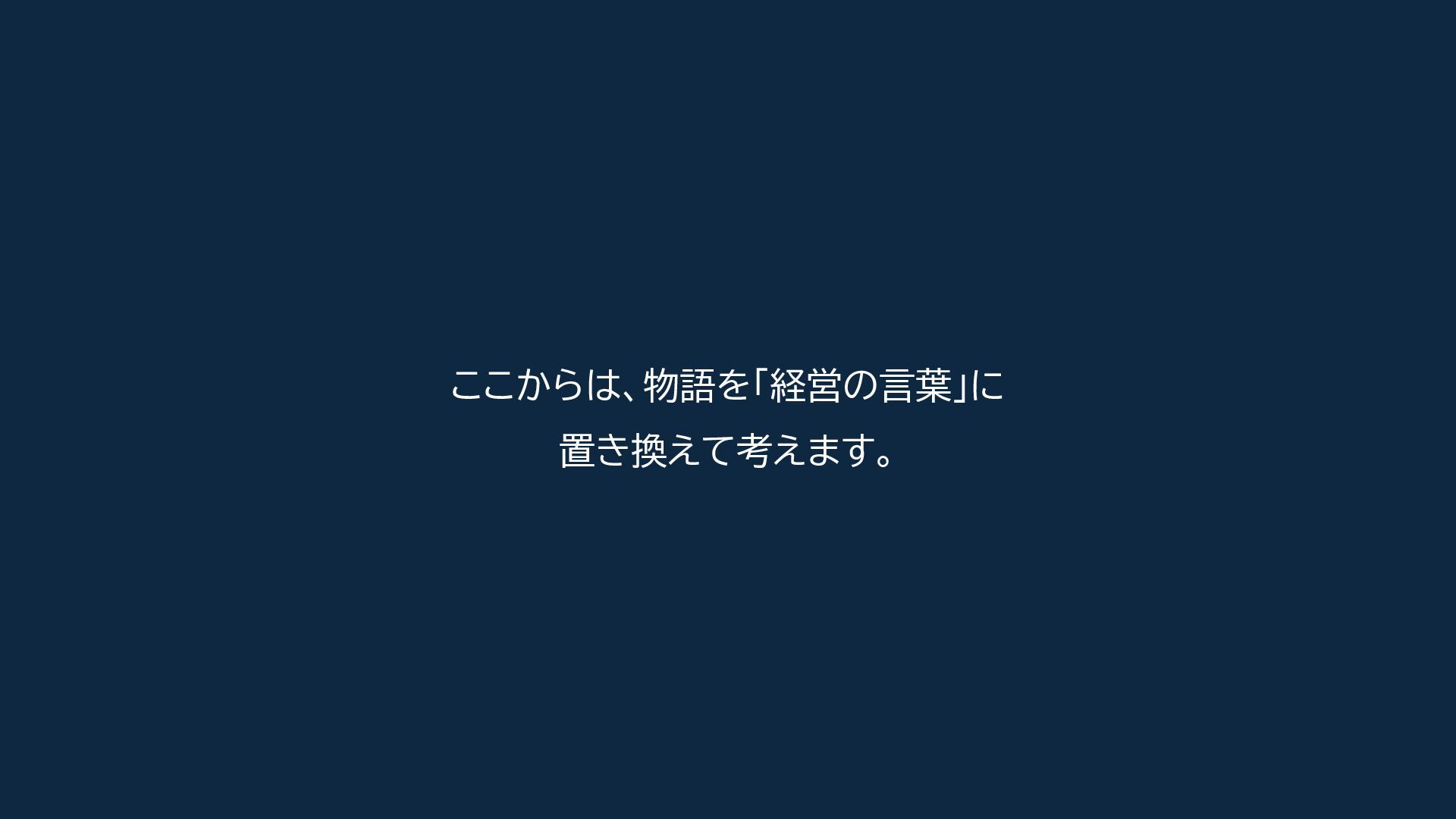 ここからは、物語を「経営の言葉」に 置き換えて考えます。