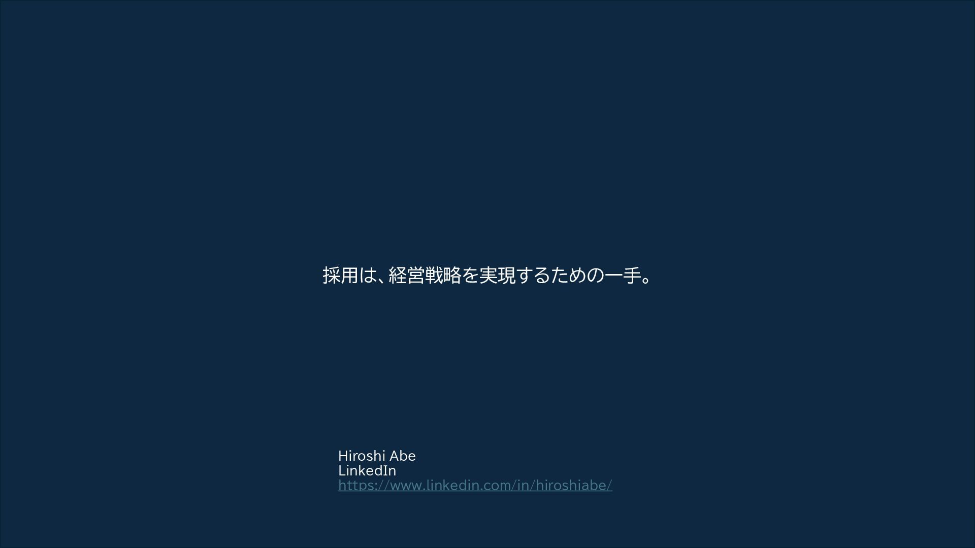 採用は、経営戦略を実現するための一手。 Hiroshi Abe LinkedIn https://www.linkedin.com/in/hiroshiabe/