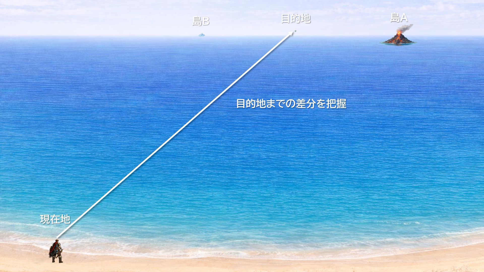 目的地 島A 島B 現在地 目的地までの差分を把握