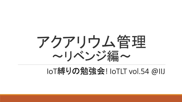 IoTLT Vol54のLT資料です。 アクアリウム管理にIoT技術を取り入れました。 水温と水位を計測し、Noodlで作成したUIにリアルタイムで表示するシステムです。 UIのコントロールボタンを押すと、給水ポンプのOn/Off制御もできます。