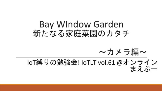 Bay WIndow Garden 新たなる家庭菜園のカタチ ~カメラ編~ IoT縛りの勉強会! IoTLT vol.61 @オンライン まえぷー