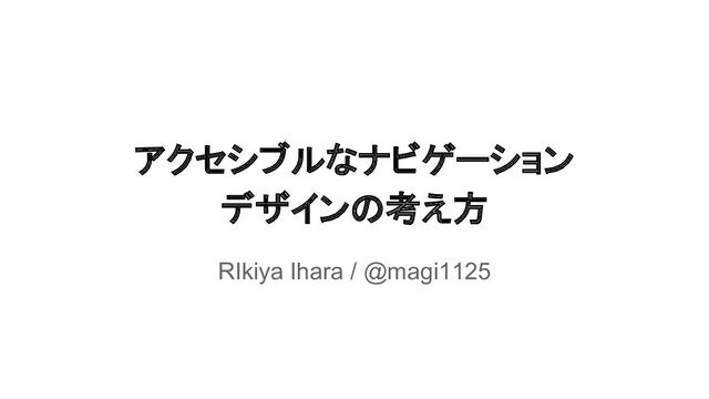 アクセシブルなナビゲーション デザインの考え方 RIkiya Ihara / @magi1125