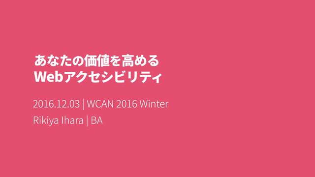 あなたの価値を高める Web アクセシビリティ 2016.12.03 | WCAN 2016 Winter Rikiya Ihara