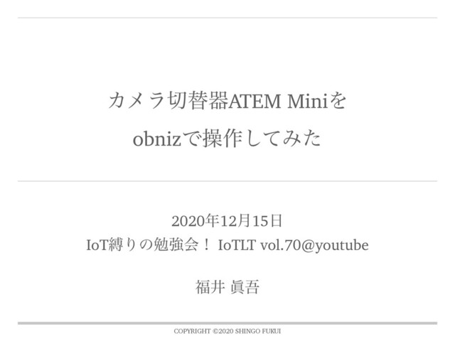 2020年12月15日に開催されたIoTLT vol.70の発表資料