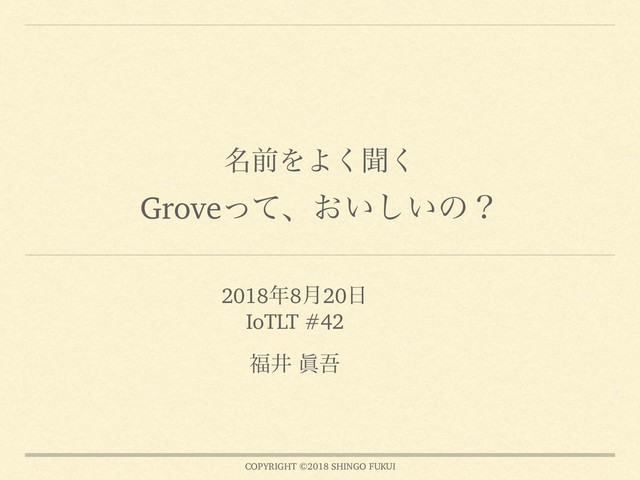 COPYRIGHT ©2018 SHINGO FUKUI ໊લΛΑ͘ฉ͘ Groveͬͯɺ͓͍͍͠ͷʁ 20188݄20 IoTLT #42 Ҫ