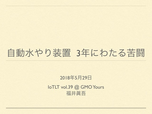 ࣗಈਫΓஔ 3ʹΘͨΔۤಆ 20185݄29 IoTLT vol.39 @ GMO Yours Ҫᚸޗ