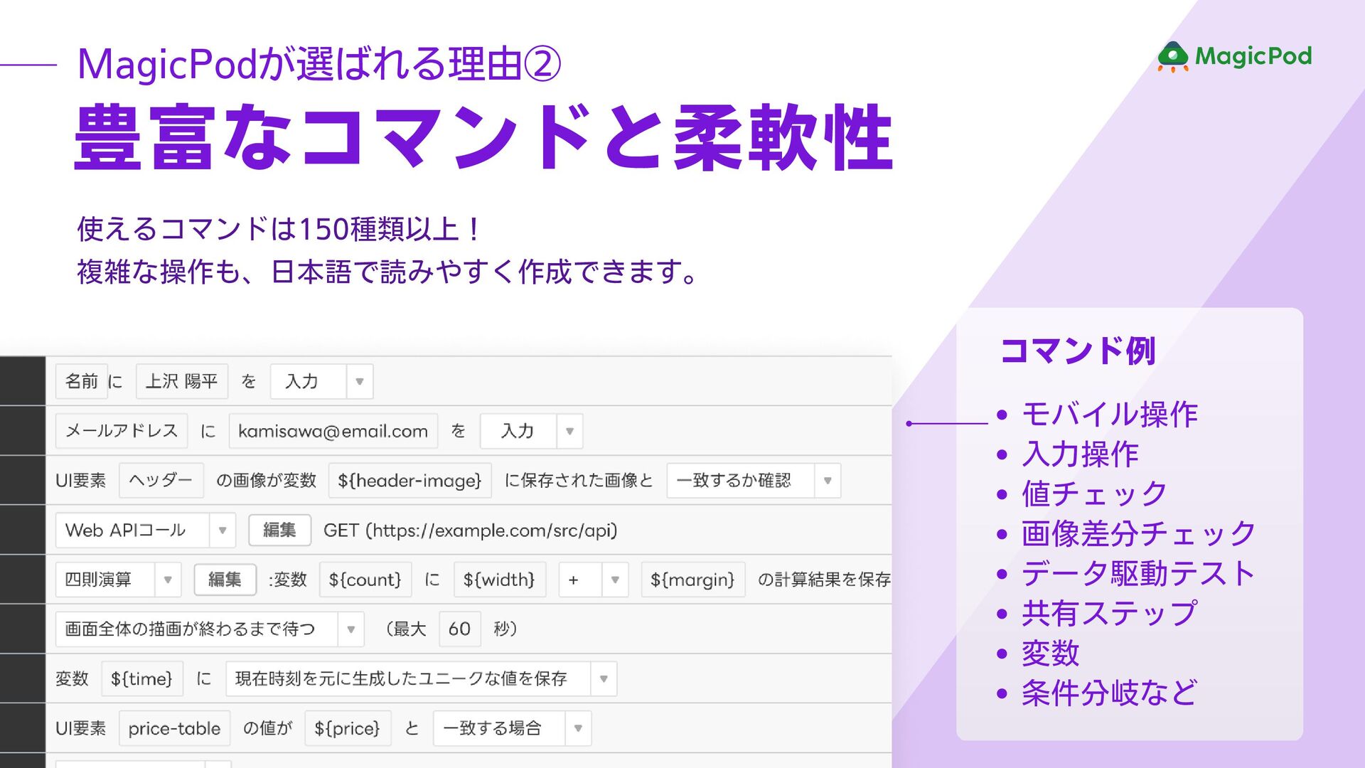コマンド例 豊富なコマンドと柔軟性 MagicPodが選ばれる理由②