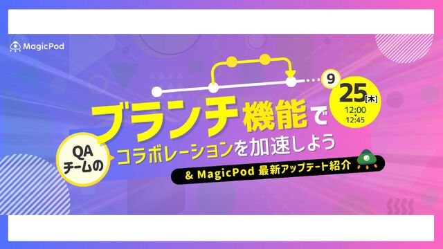株式会社MagicPodが2025年9月25日に開催したオンラインウェビナー「ブランチ機能でQAチームのコラボレーションを加速しよう」で使用したスライドです。