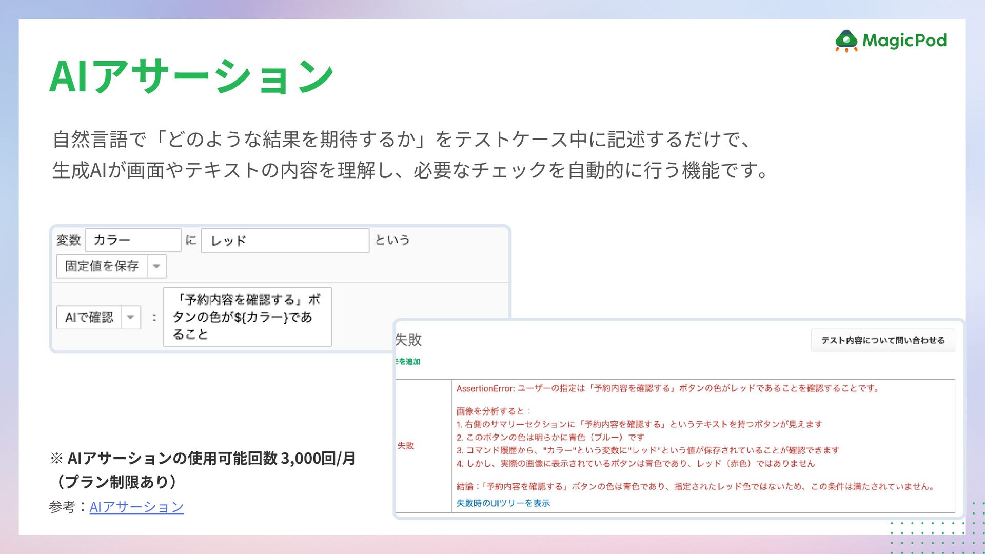 参考:AIアサーション https://support.magic-pod.com/hc/ja/articles/51882271299609