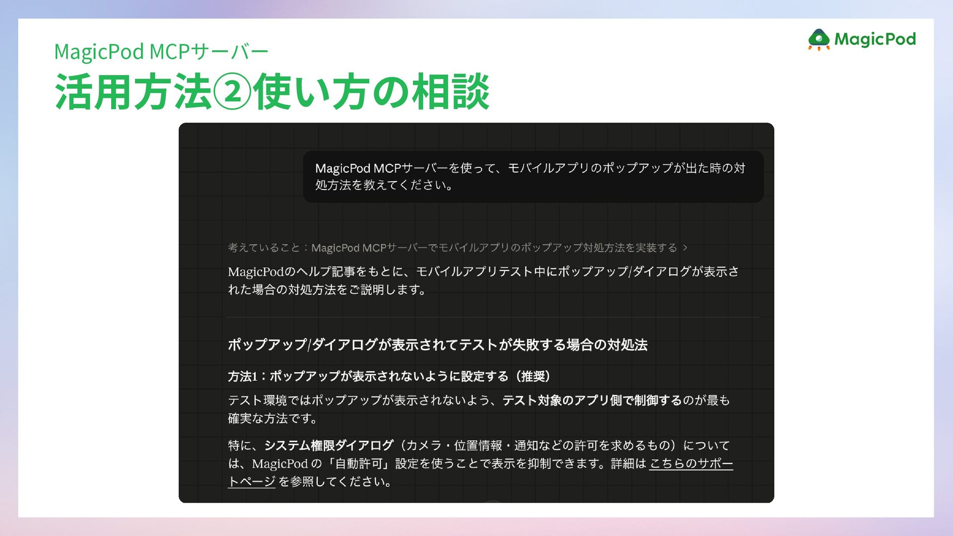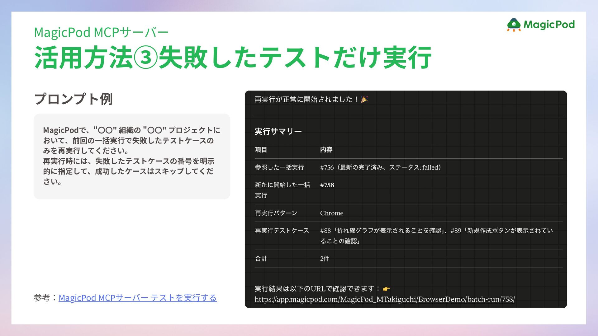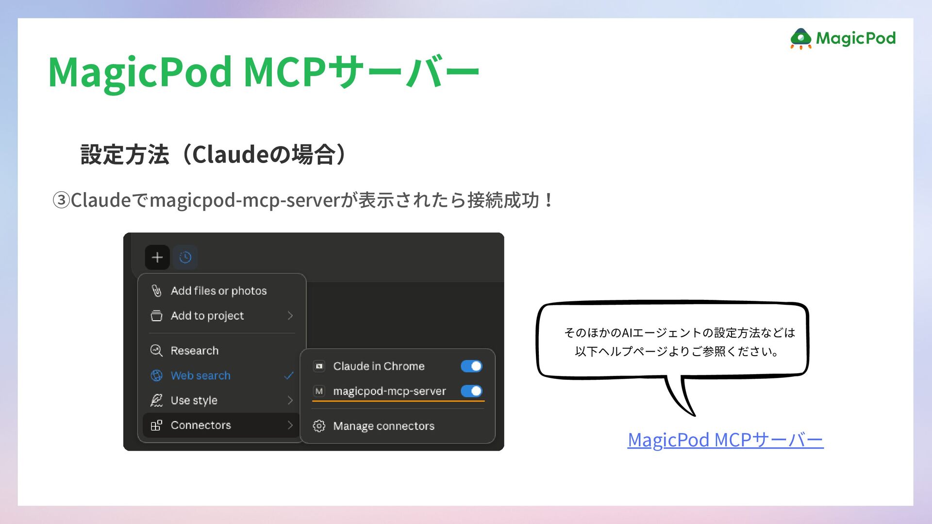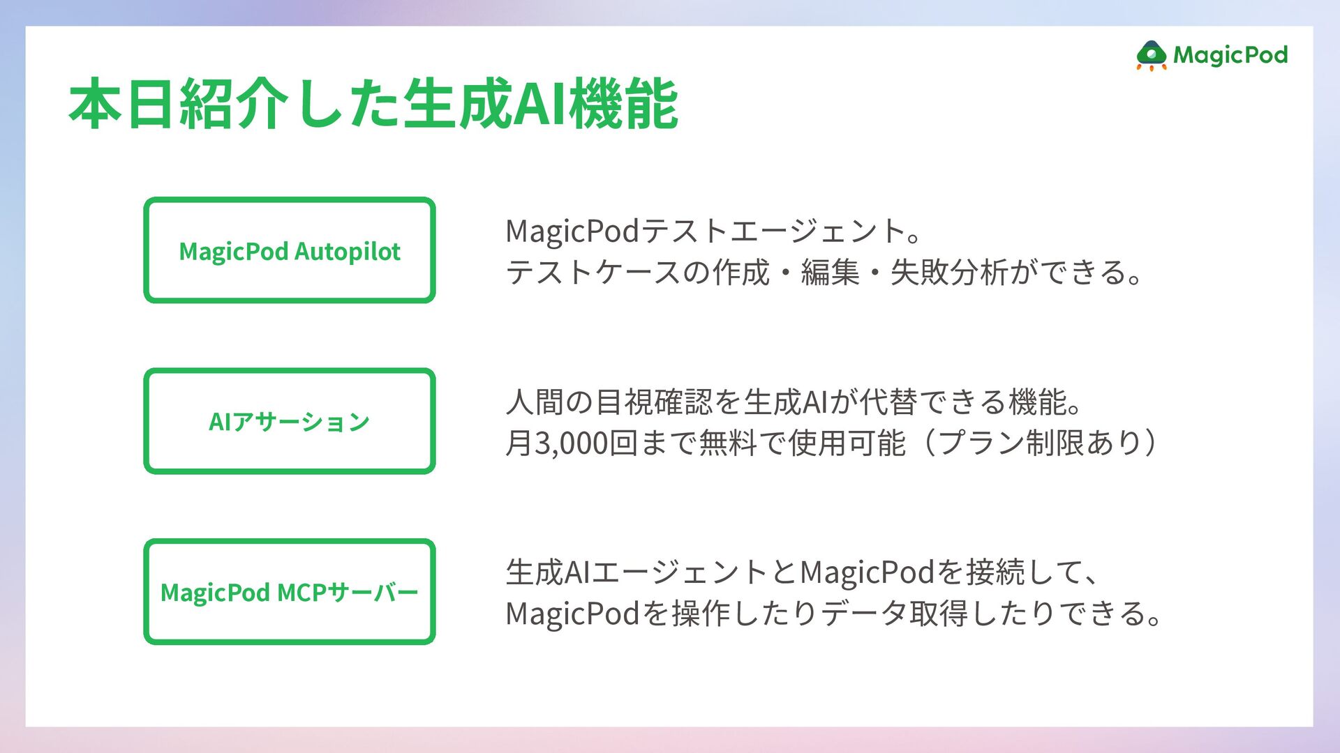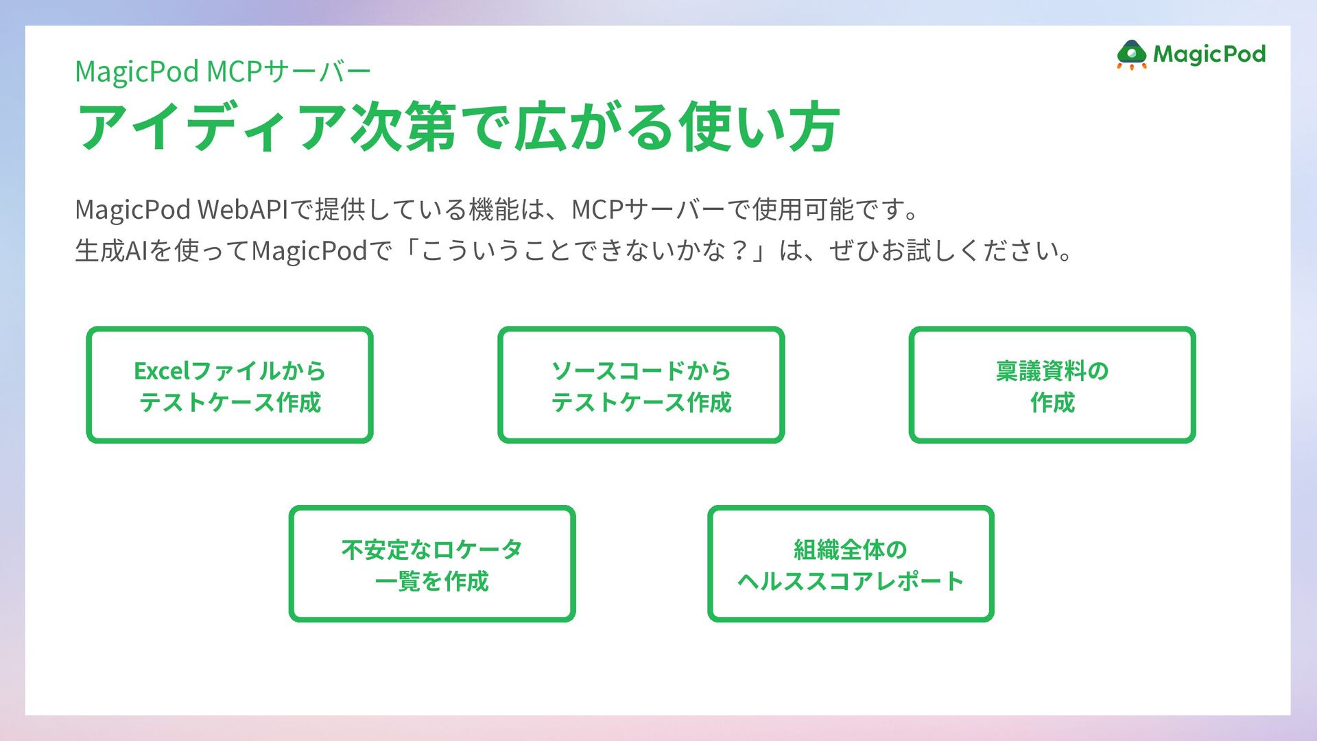 参考:MagicPod MCPサーバー https://support.magic-pod.com/hc/ja/articles/46186888063769