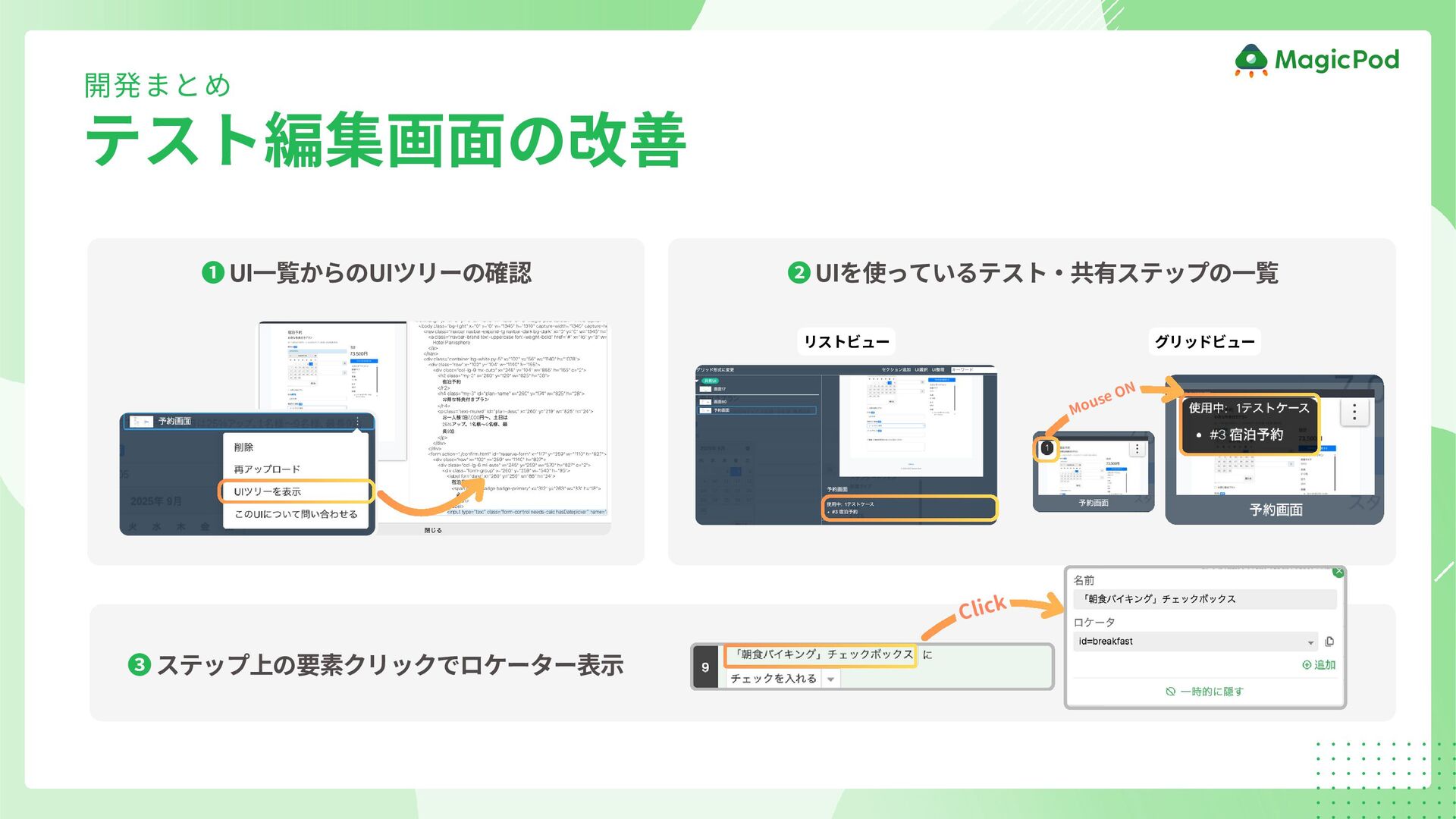 UI一覧からのUIツリーの確認 テスト編集画面の改善 開発まとめ