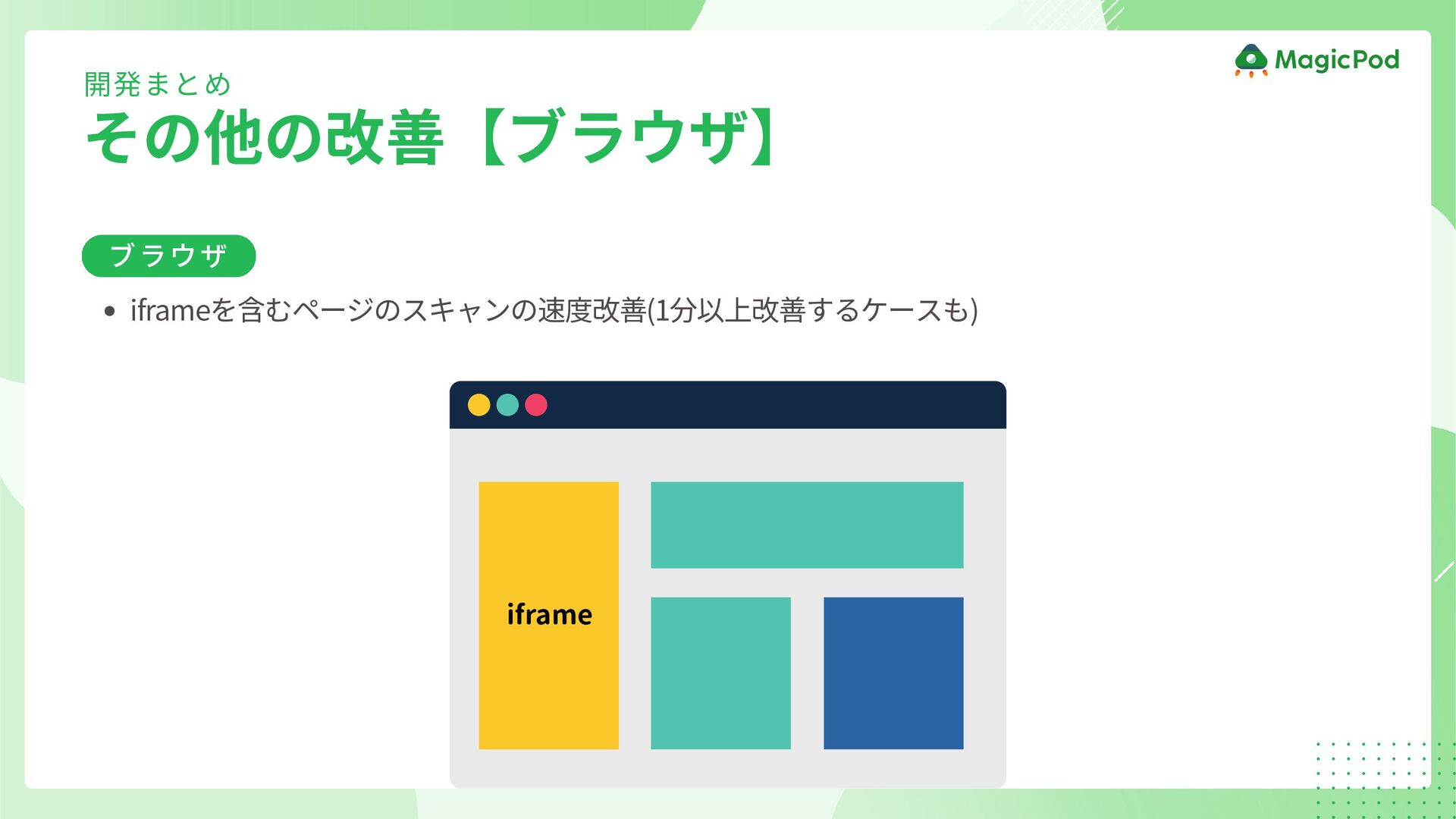 iframeを含むページのスキャンの速度改善(1分以上改善するケースも) その他の改善【ブラウザ】 開発まとめ ブラウザ iframe