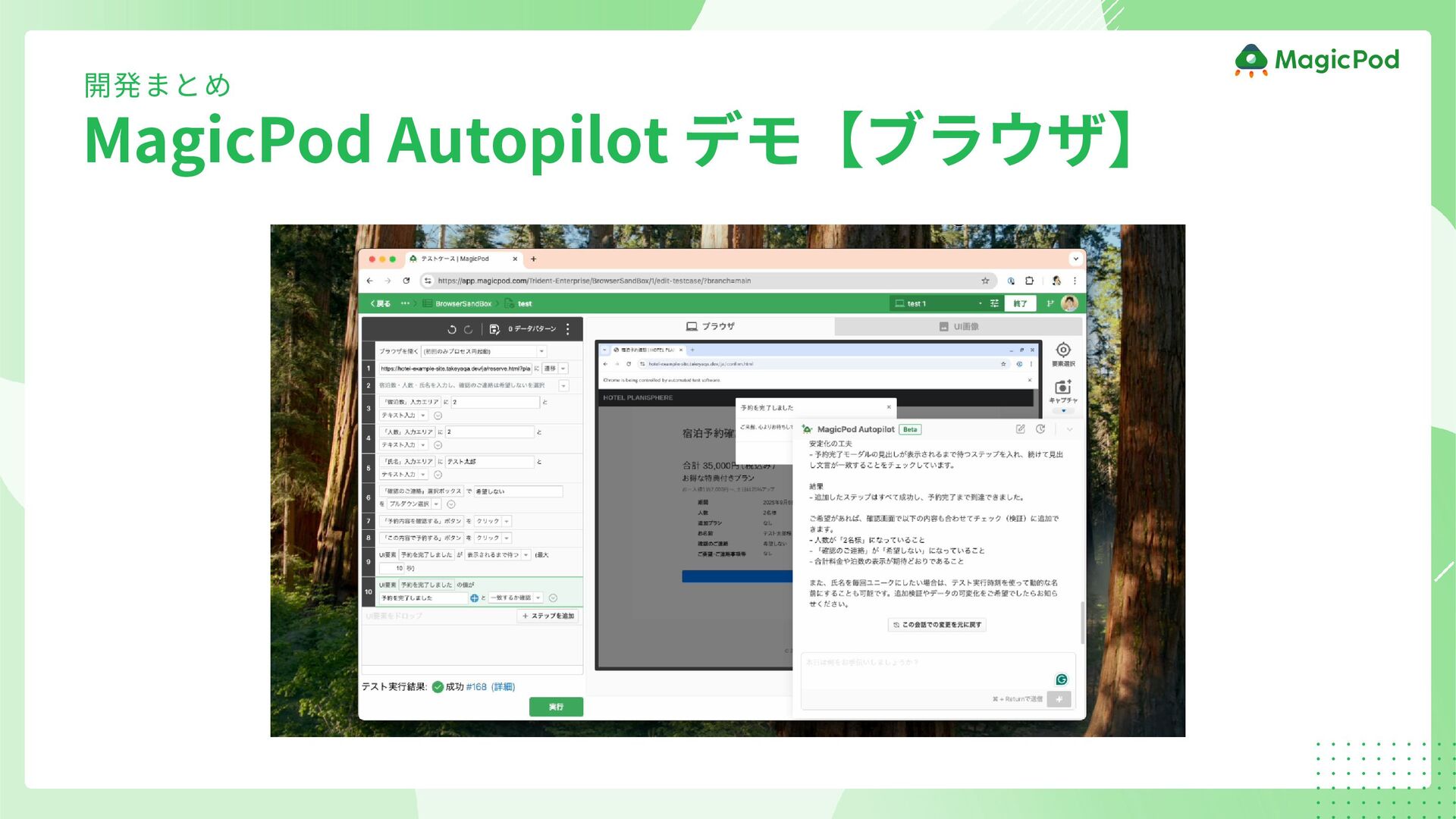 MagicPod Autopilot デモ【ブラウザ】 機能概要 開発まとめ