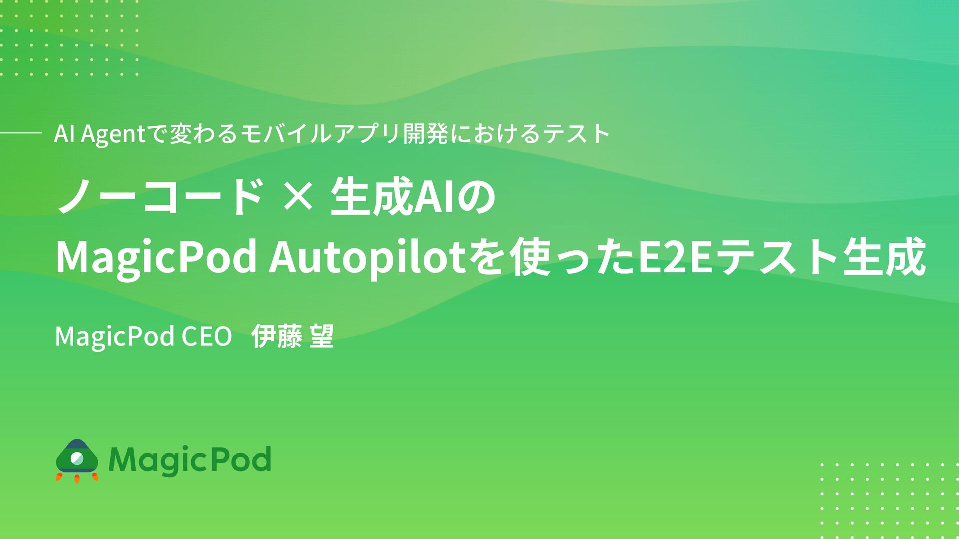 ノーコード × 生成AIの MagicPod Autopilotを使ったE2Eテスト生成 AI Agentで変わるモバイルアプリ開発におけるテスト MagicPod CEO 伊藤